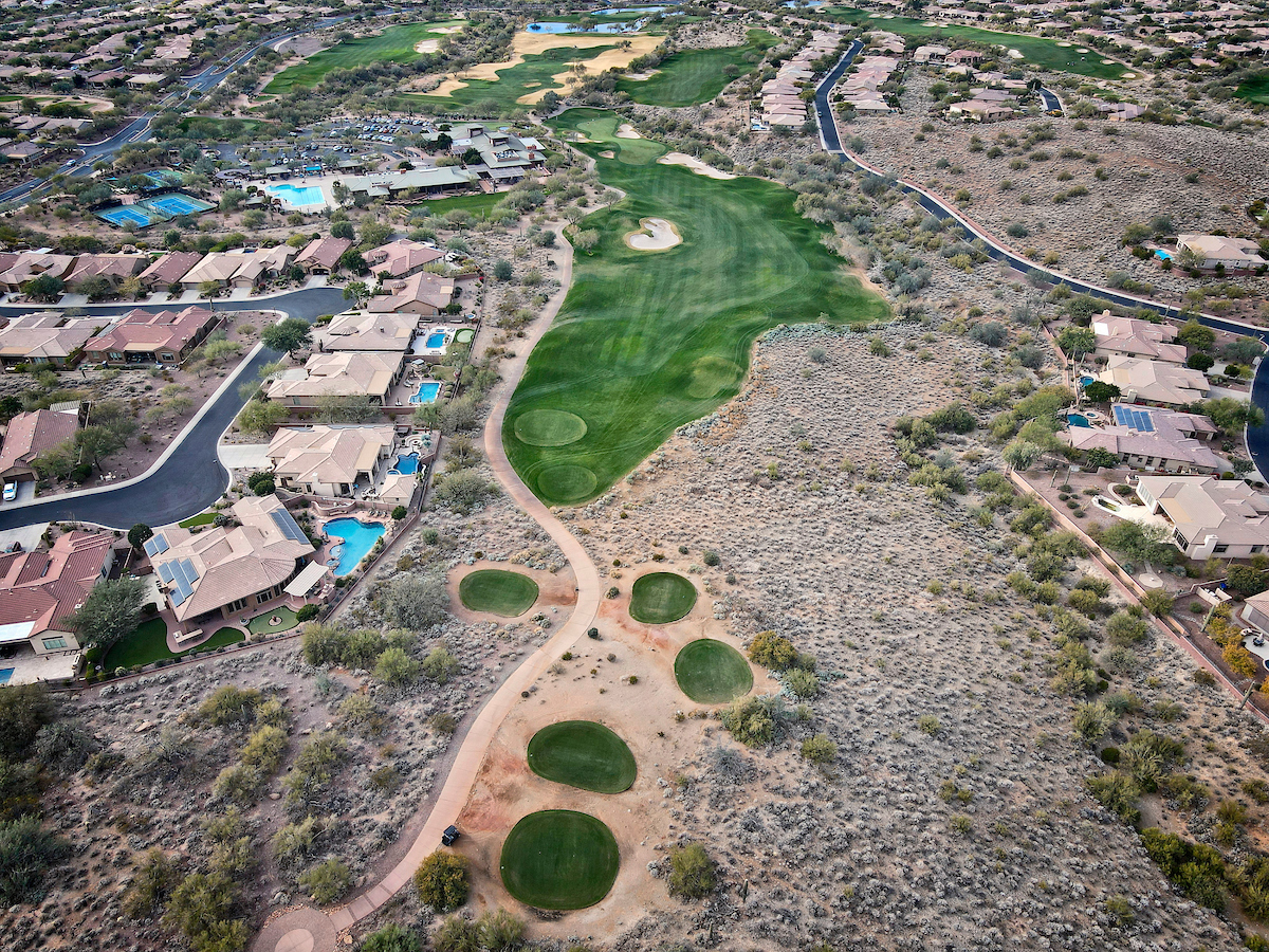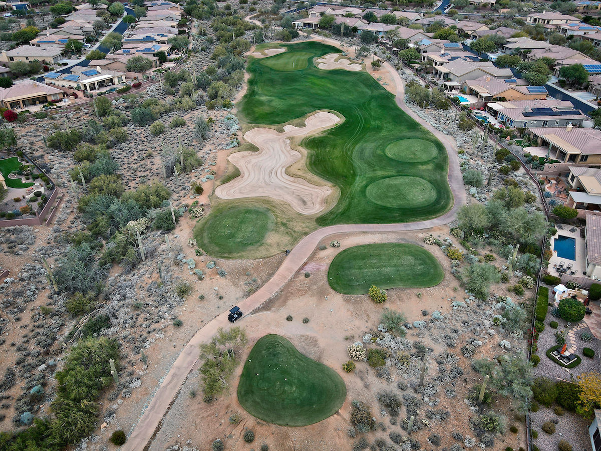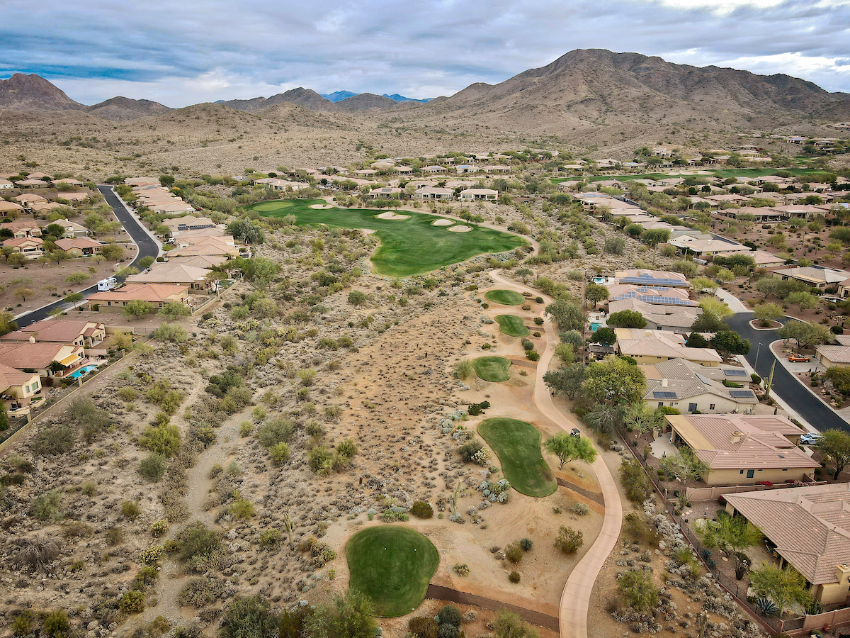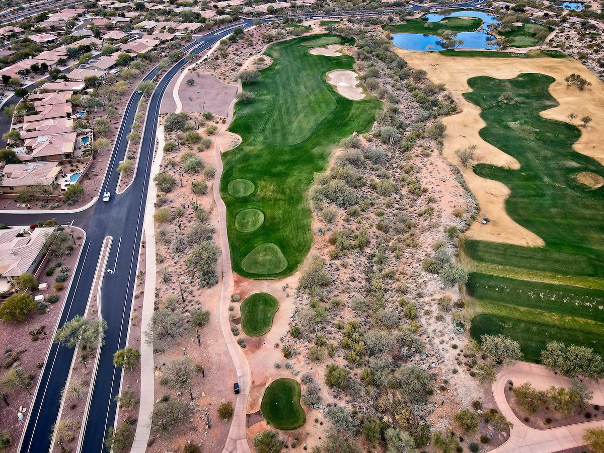 The Persimmon Course, which opened to rave reviews in 1999 as a Scottsdale private golf course, features elevation changes from 50 feet to 300 feet. It’s the more traditional of the two Anthem, Arizona golf courses, which features a signature, 18,000 square foot double green that concludes both the front and back nines. Perhaps the most notable is the final stretch of holes 15 through 18 that makes for a strong finish.