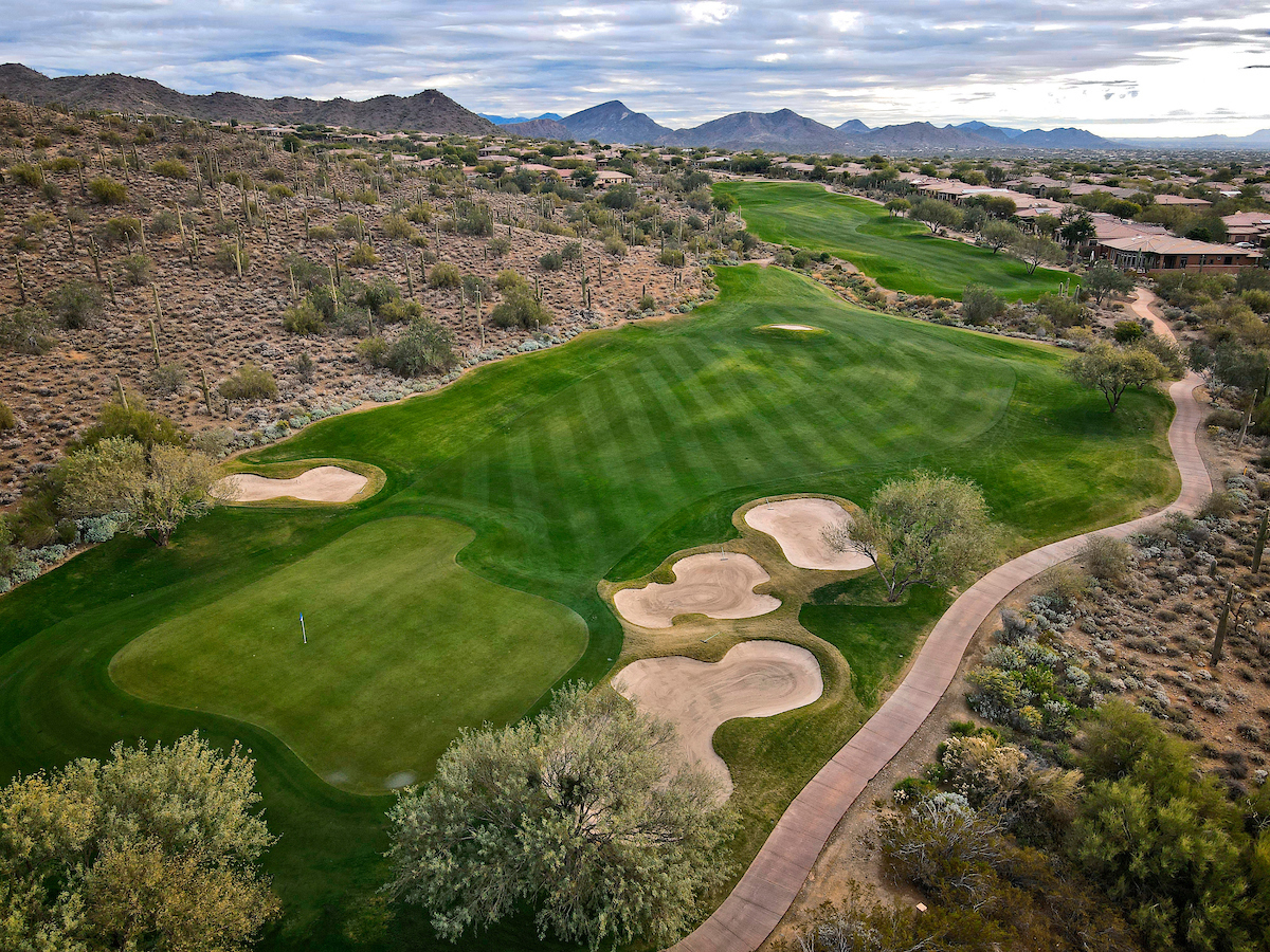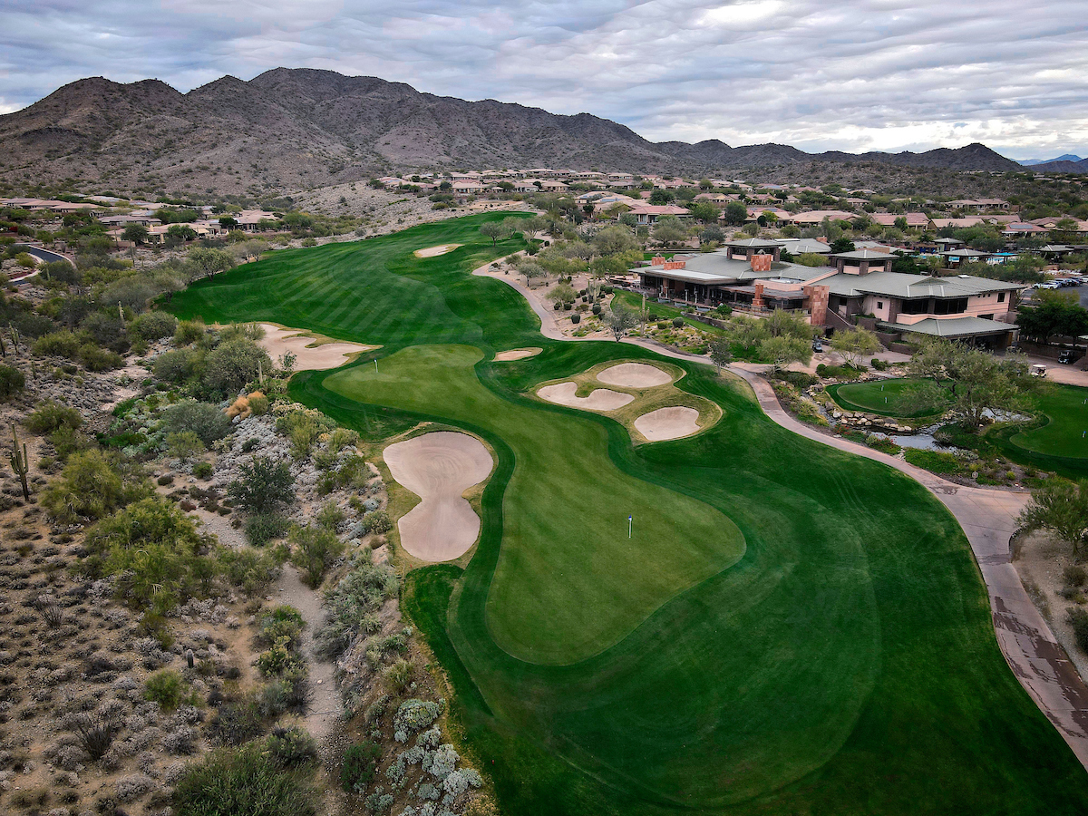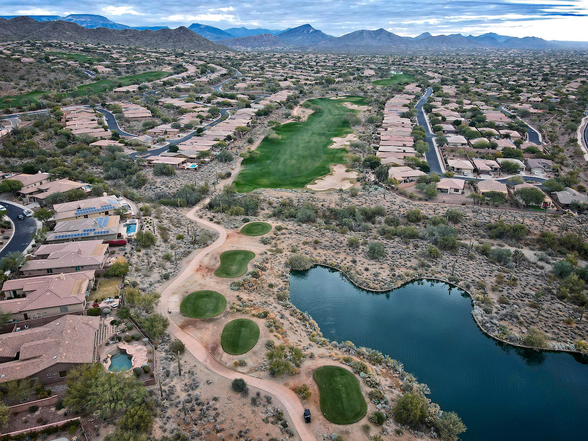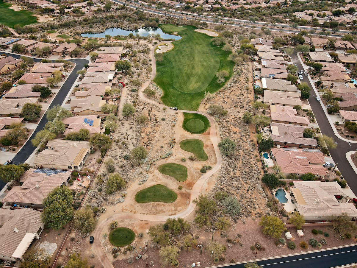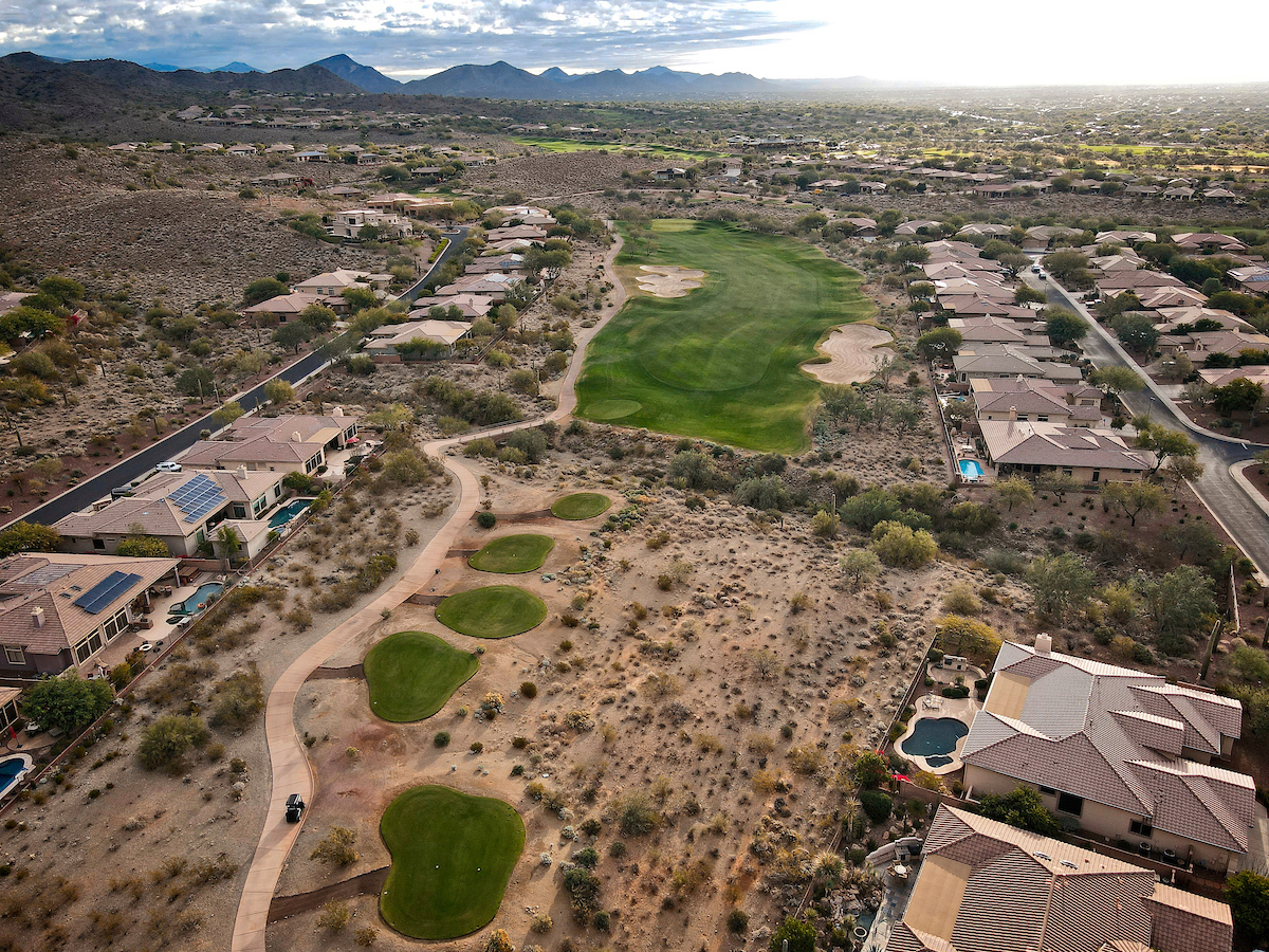 The Persimmon Course, which opened to rave reviews in 1999 as a Scottsdale private golf course, features elevation changes from 50 feet to 300 feet. It’s the more traditional of the two Anthem, Arizona golf courses, which features a signature, 18,000 square foot double green that concludes both the front and back nines. Perhaps the most notable is the final stretch of holes 15 through 18 that makes for a strong finish.