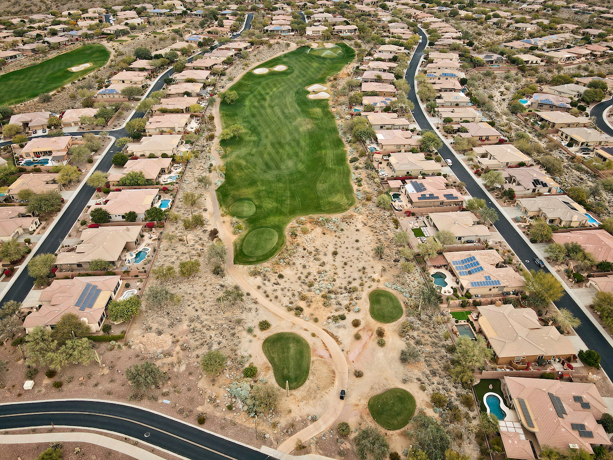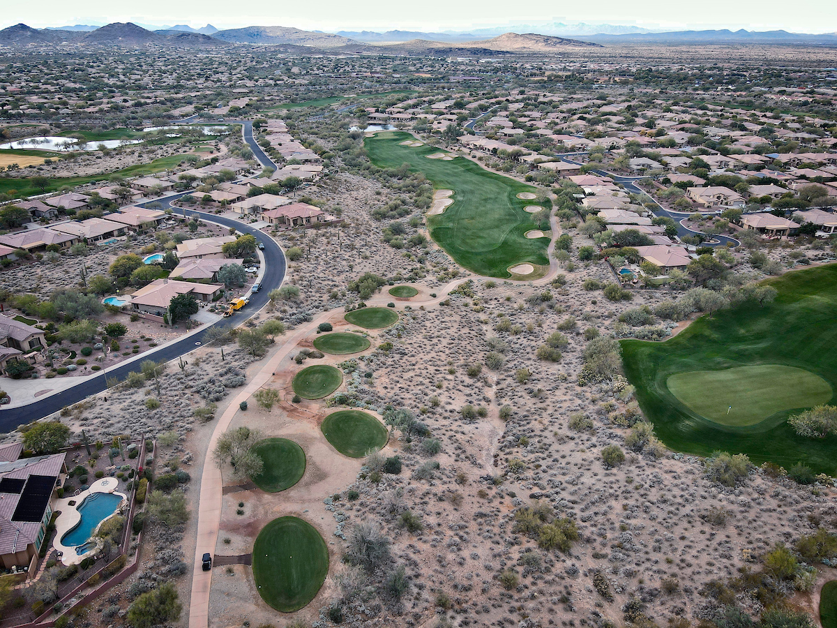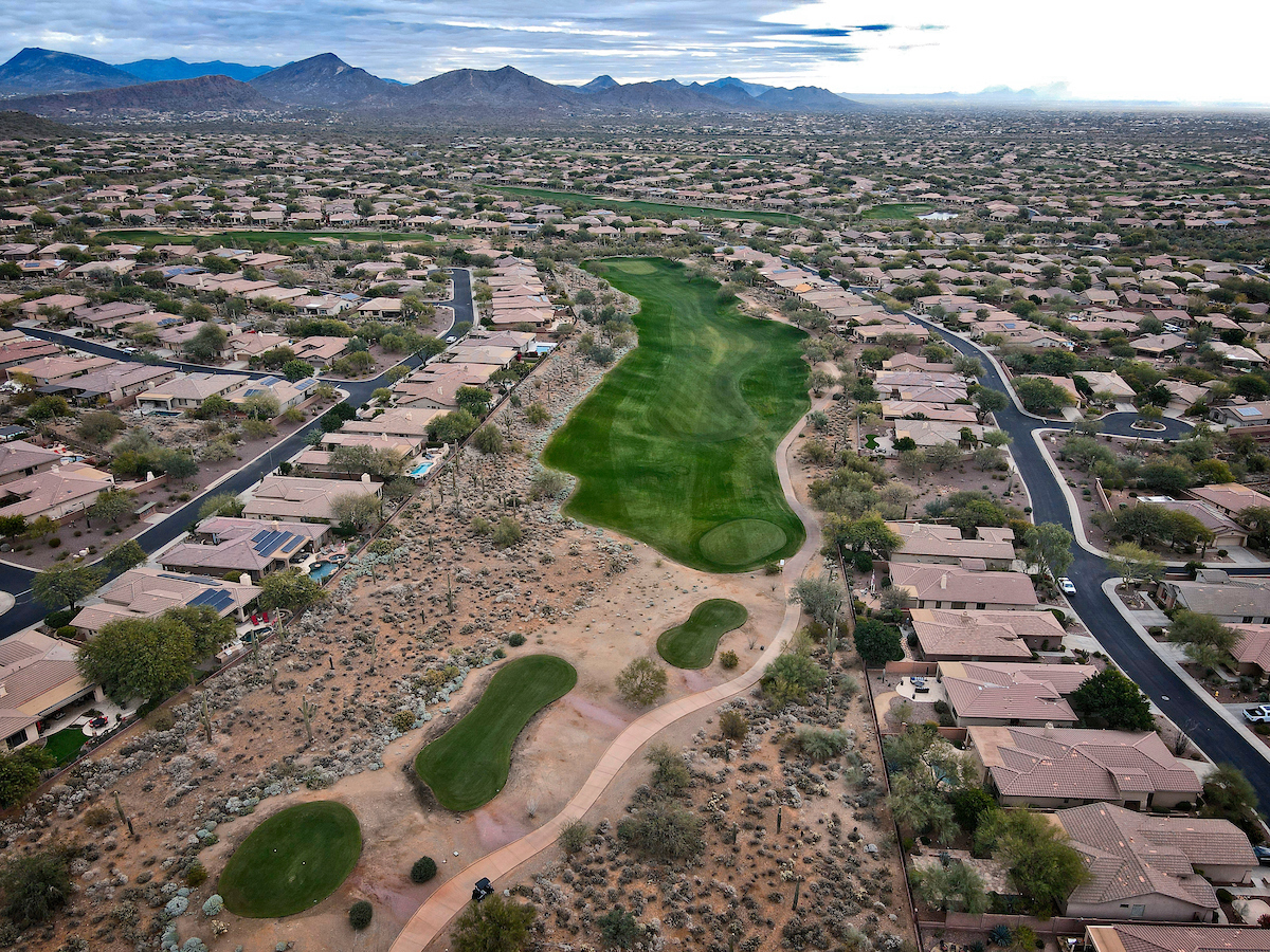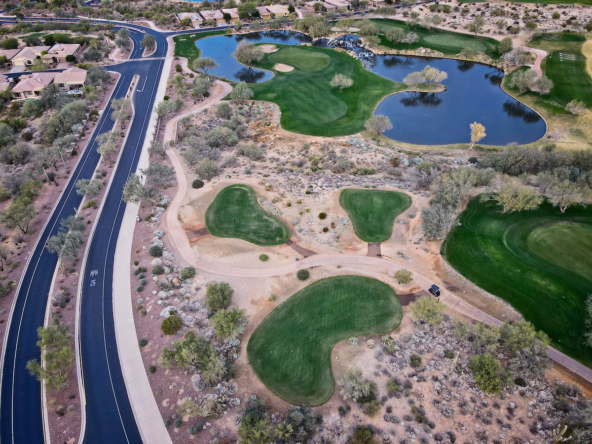 The Persimmon Course, which opened to rave reviews in 1999 as a Scottsdale private golf course, features elevation changes from 50 feet to 300 feet. It’s the more traditional of the two Anthem, Arizona golf courses, which features a signature, 18,000 square foot double green that concludes both the front and back nines. Perhaps the most notable is the final stretch of holes 15 through 18 that makes for a strong finish.