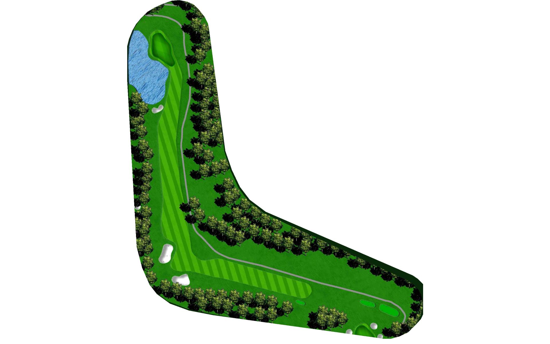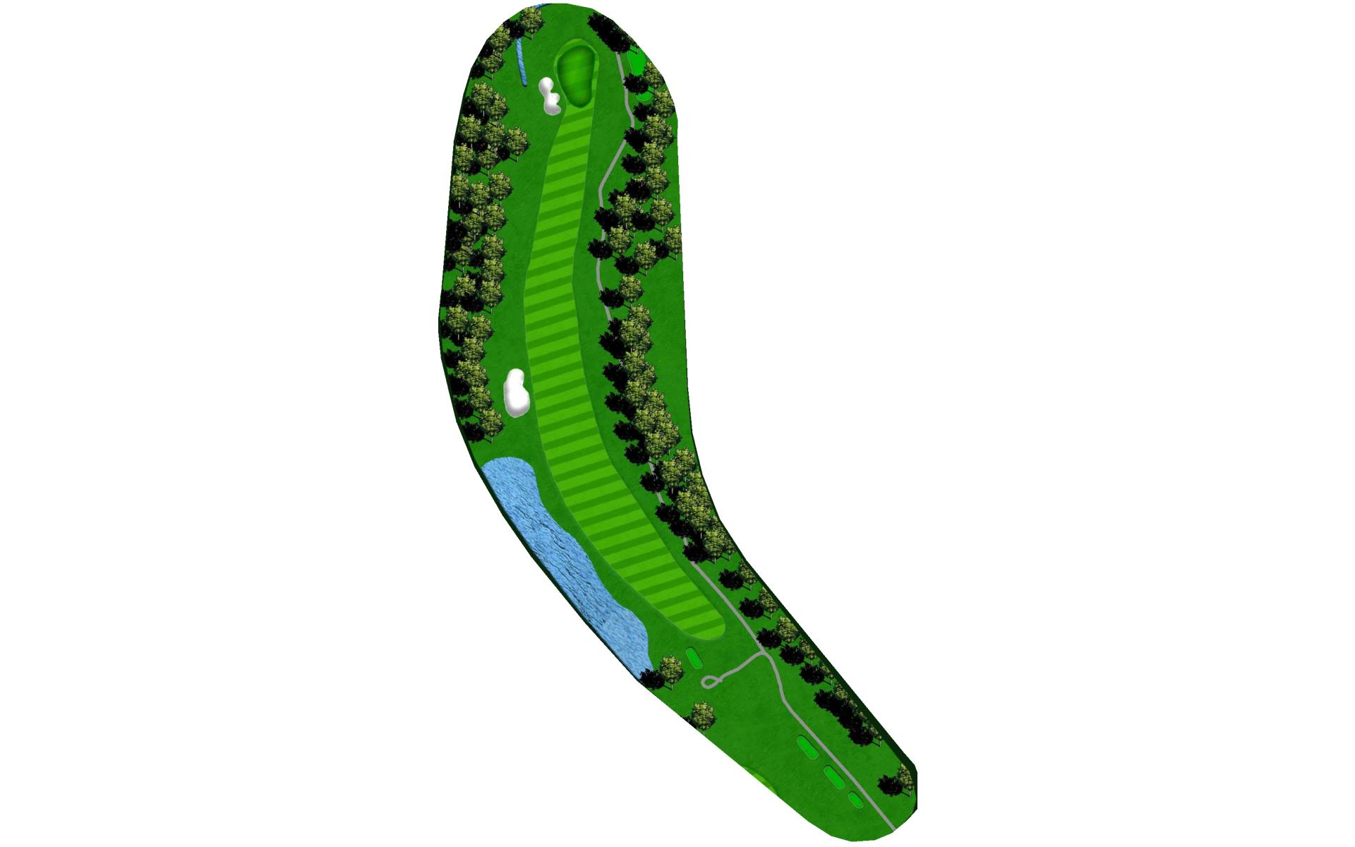 A dogleg left par 4 with water in play left on your tee shot. The right side of the fairway gives you the best angle to an uphill approach shot to a green that is not very deep. Beware of the bunkers short.
