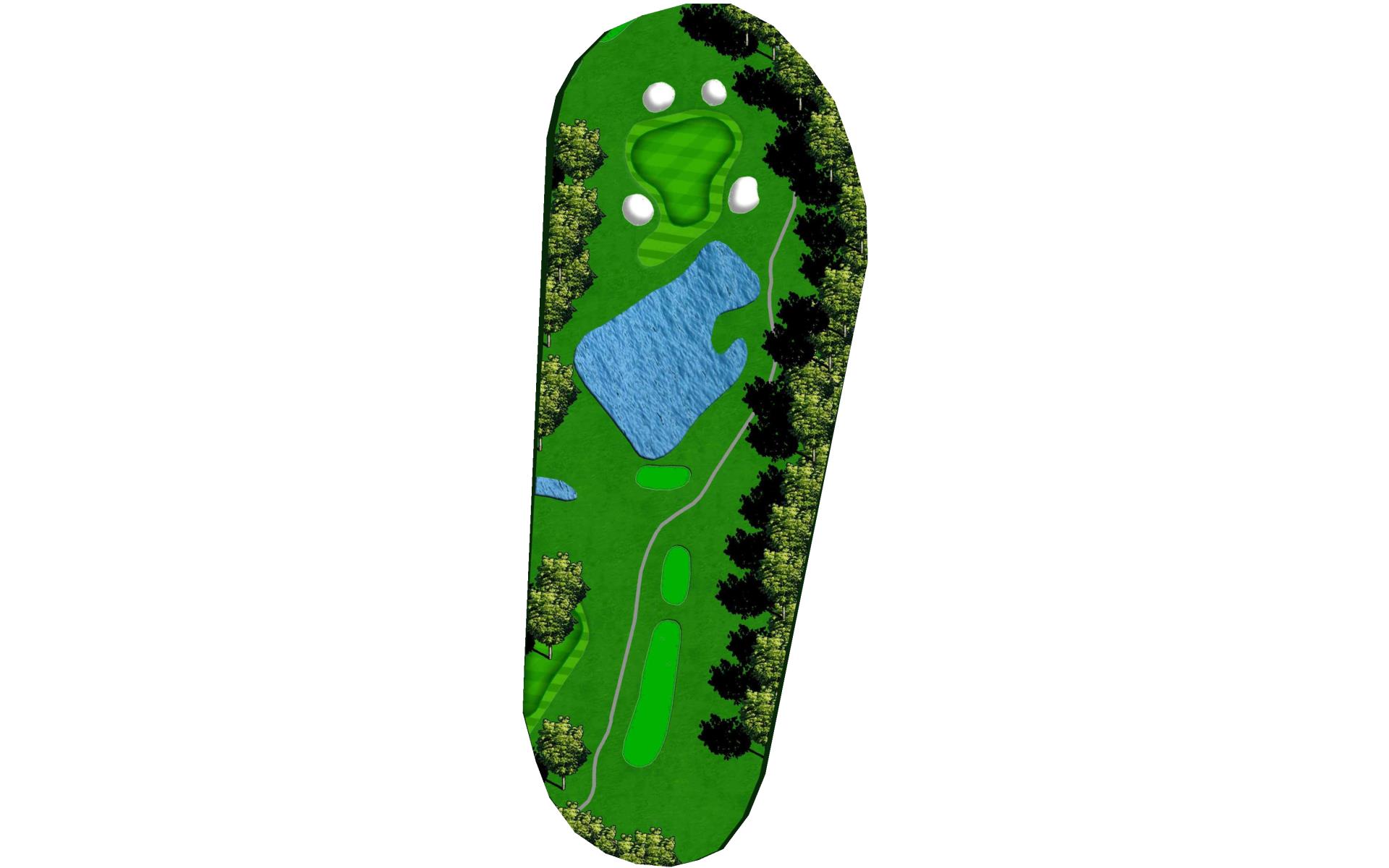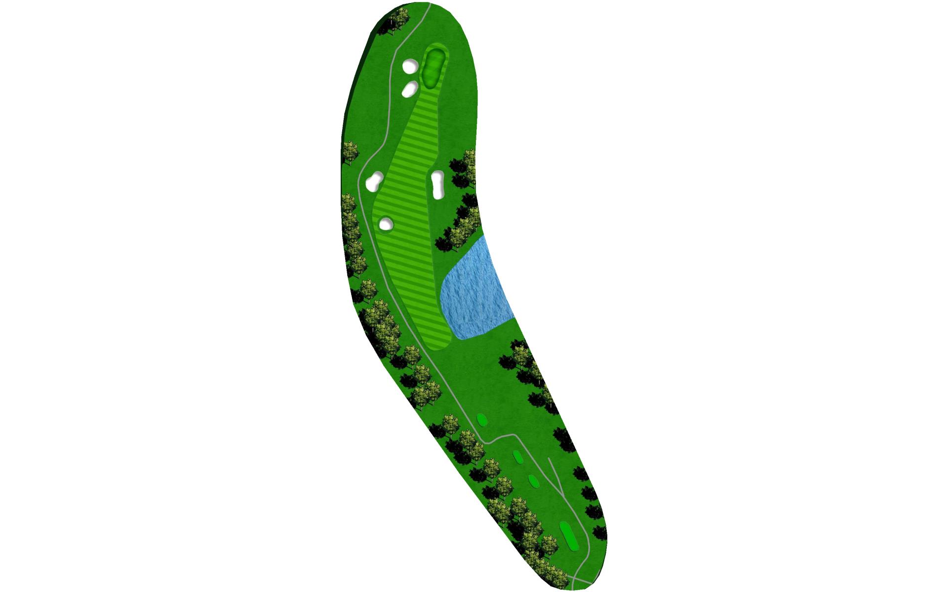 A short par 3 with a very tricky green and water short. You will want an uphill putt; beware of 3-putts and fast downhill putts.
