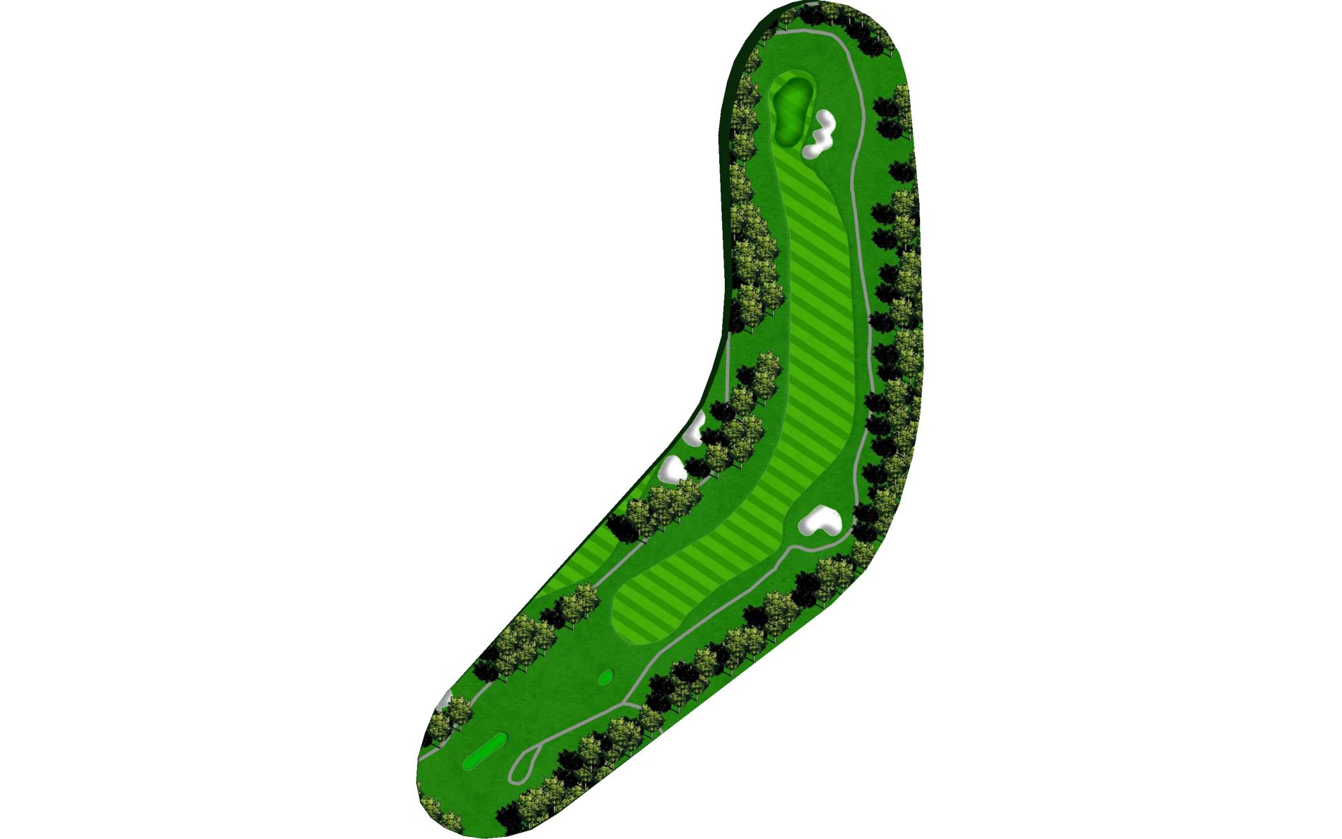 A dogleg right, long par 4. Avoid the creek that runs along the left side of this hole.