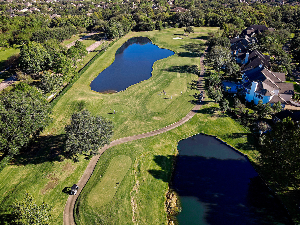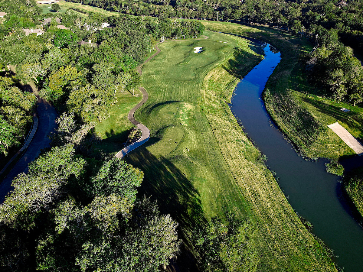 This medium-length par 5 plays a bit easier than it looks. The tee box starts in a shoot of trees, but there’s a large landing area available. Players must avoid the water that runs along the right side of the hole and protects the green.