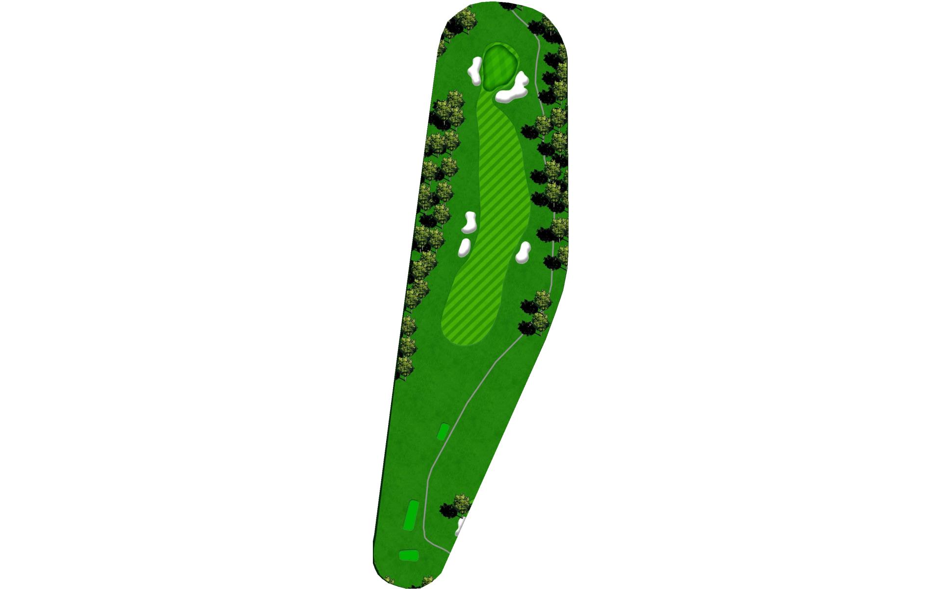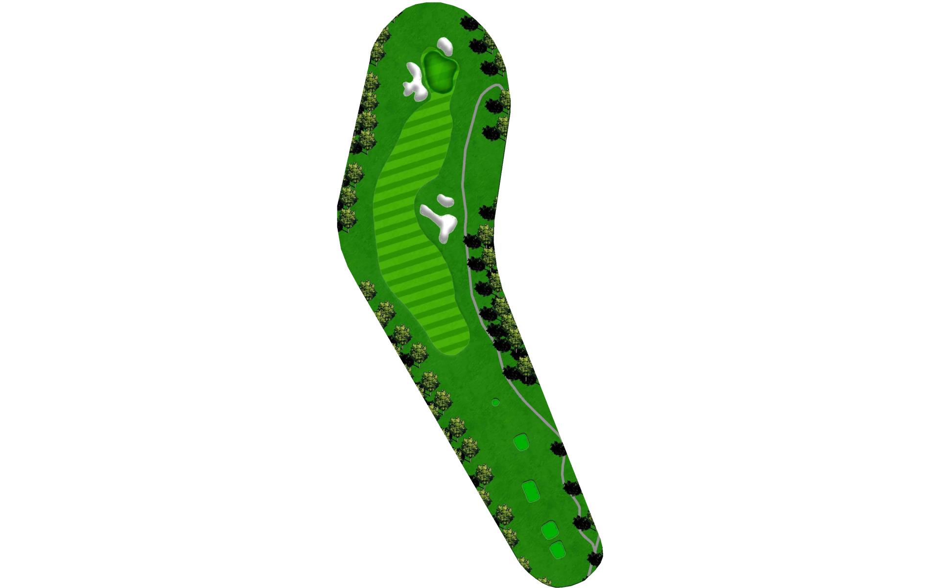Pay attention to the wind direction on the first par 3 of the day as being short of the green will end up in one of the bunkers guarding the putting surface. Depending on the pin location, be mindful of a ridge in the middle of the green that will feed the ball right or left.