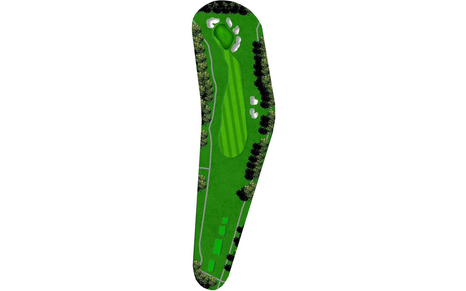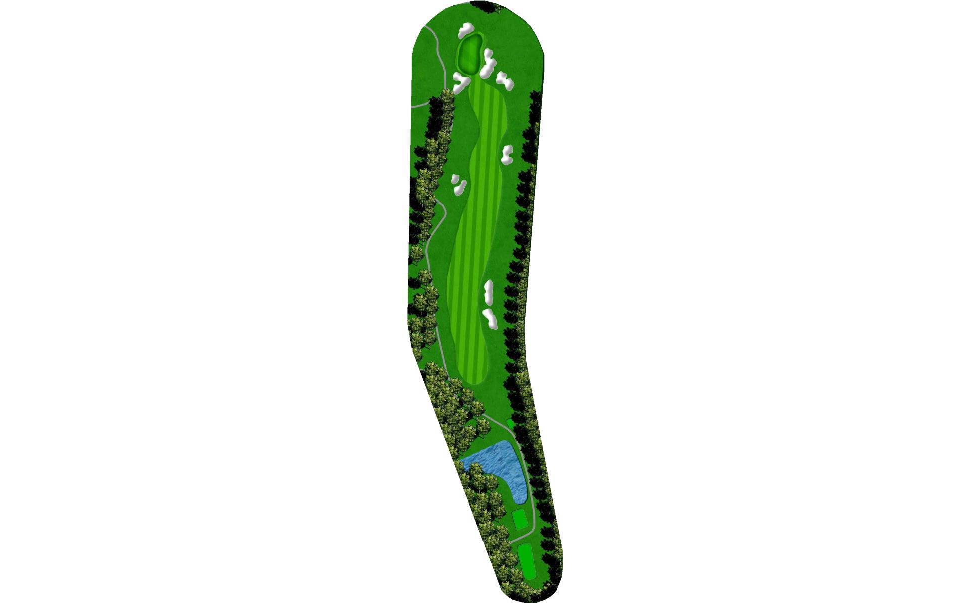 There's out of bounds right, and even though the hole plays downhill you will still need enough club with another out of bounds on the left near the green.