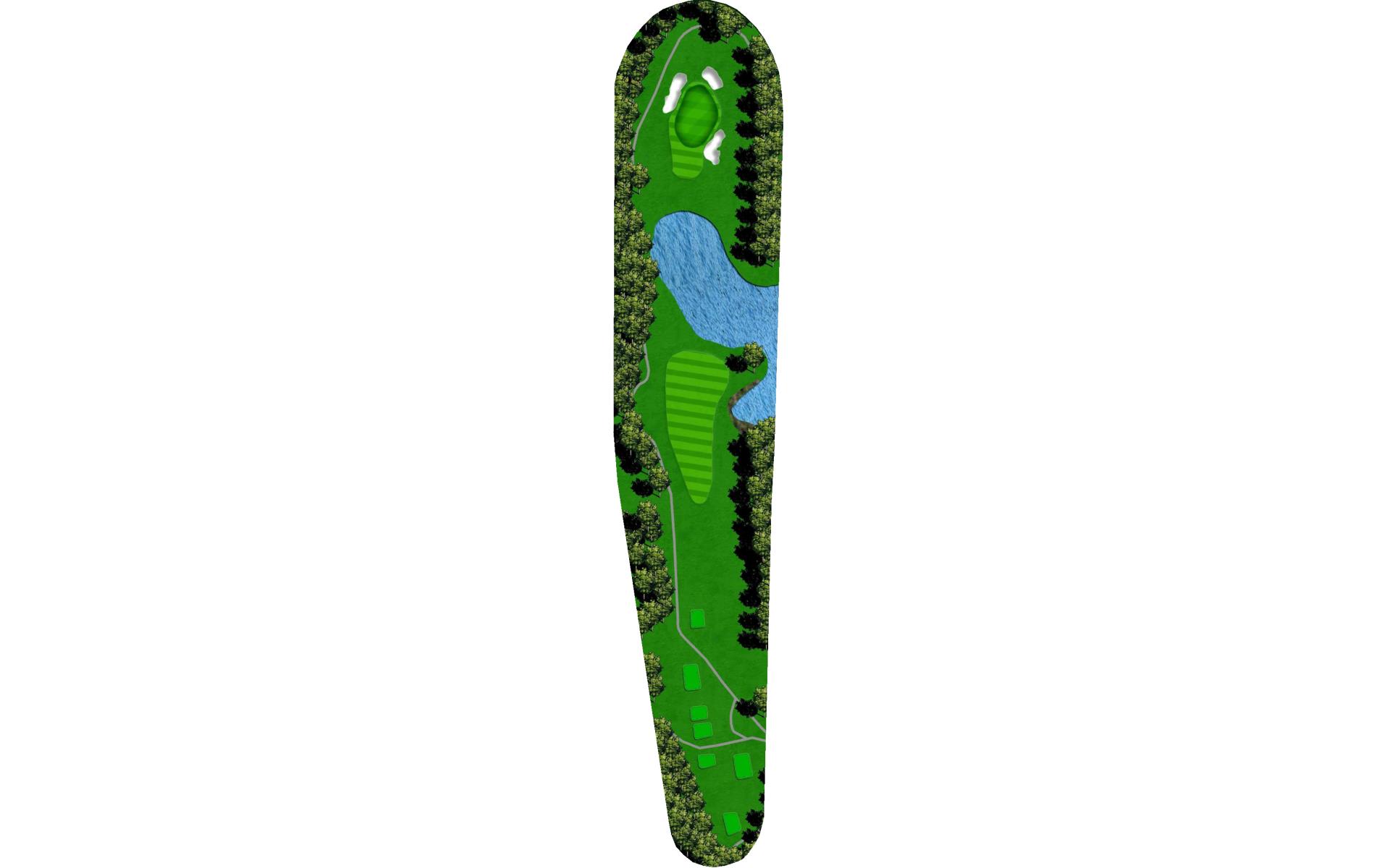 Favor the right side of green to avoid water left. The green tends to slope towards the water.
