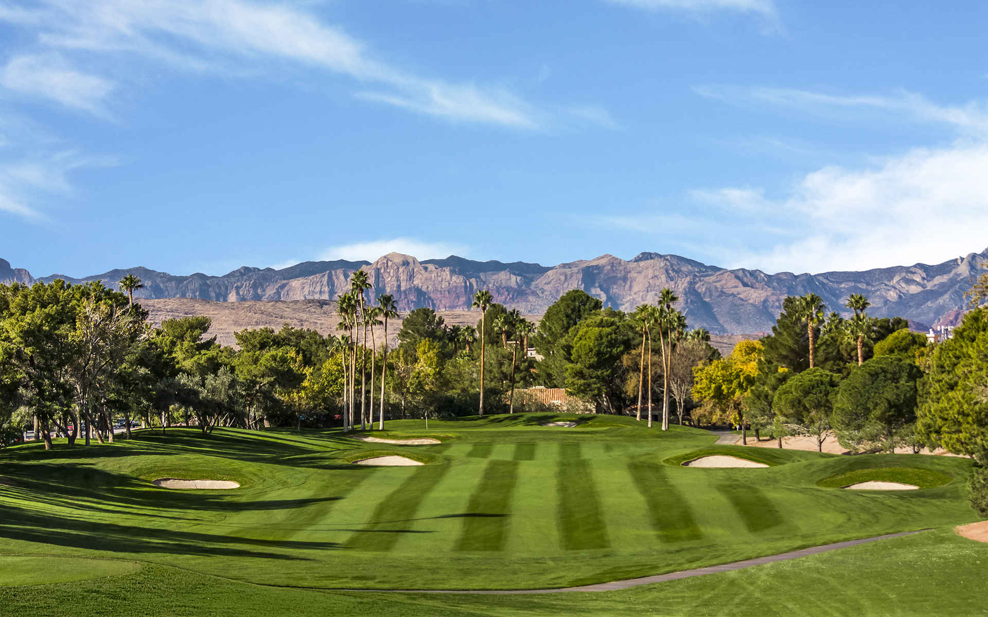 Nestled in the Las Vegas desert, Canyon Gate Country Club, designed by Ted Robinson in 1989, is a stunning 18-hole championship course spanning 6,742 yards. Robinson's strategic layout winds through lush fairways, tranquil lagoons, and the dramatic Red Rock Canyon National Conservation Area backdrop. The course offers a visual feast, with its emerald greenery contrasting the desert landscape, and strategically placed water hazards providing risk and reward. Robinson's design brilliance caters to golfers of all levels, testing seasoned players with challenges like bunkers and doglegs while offering forgiving fairways for novice players to enjoy the round.