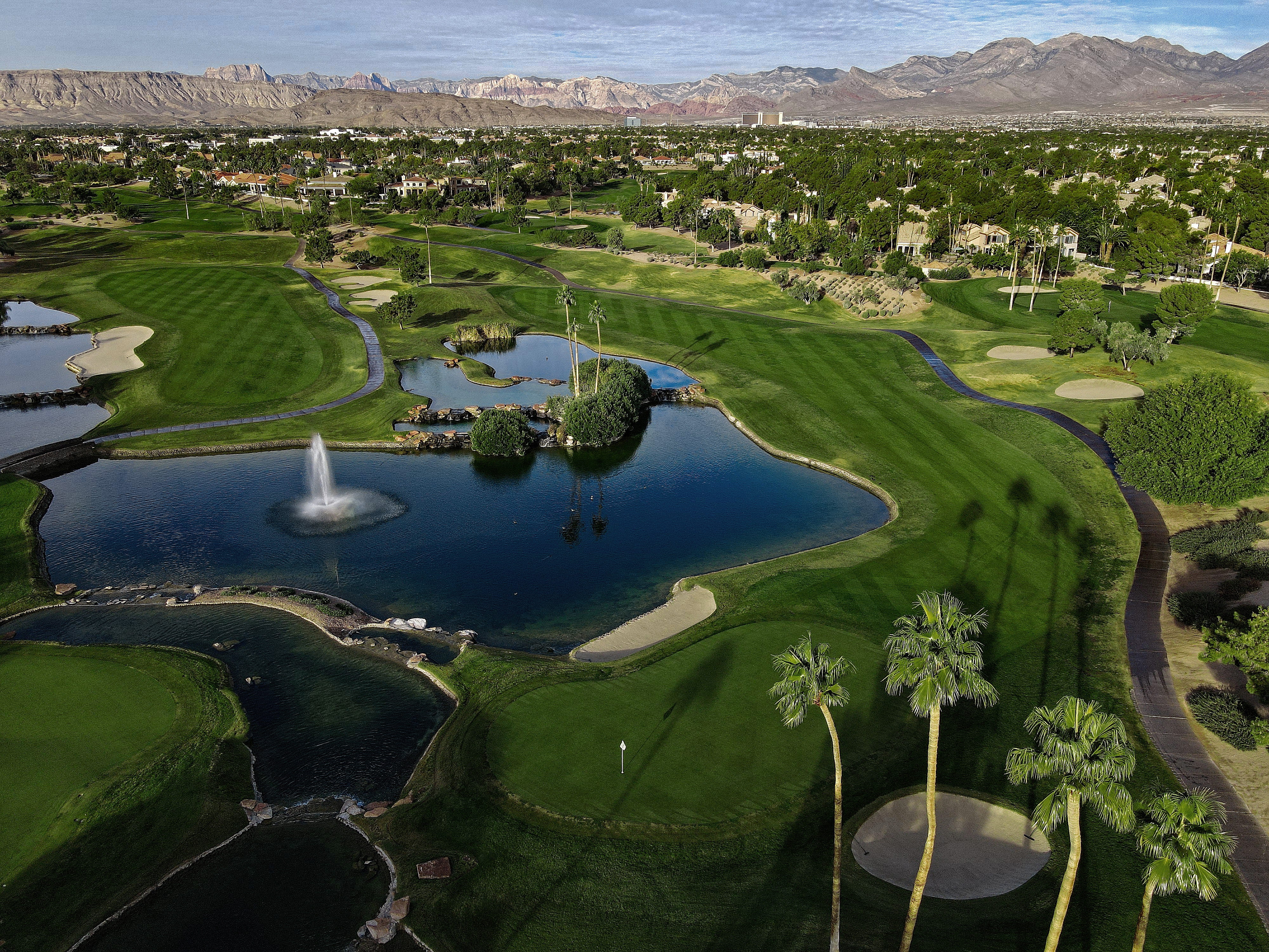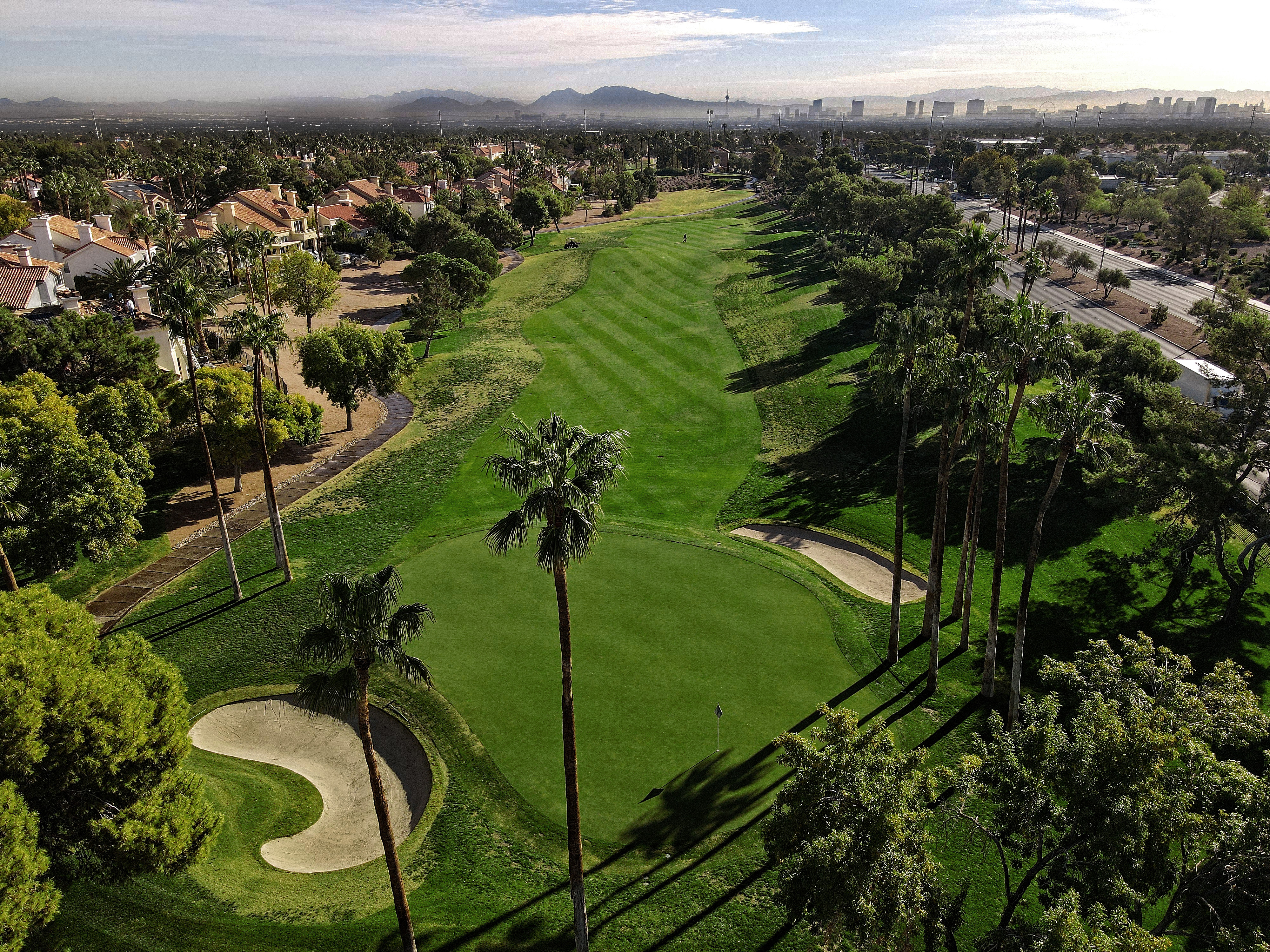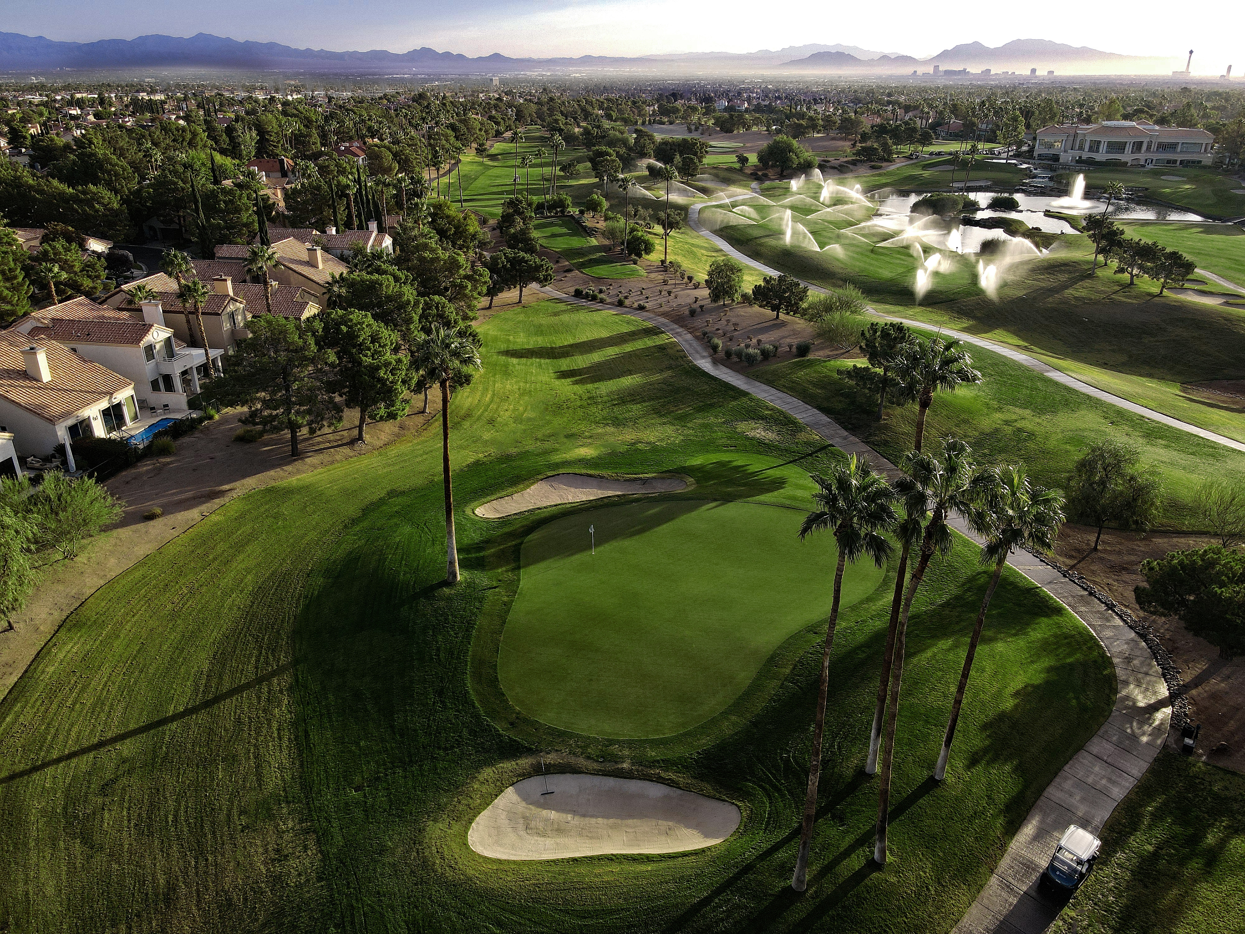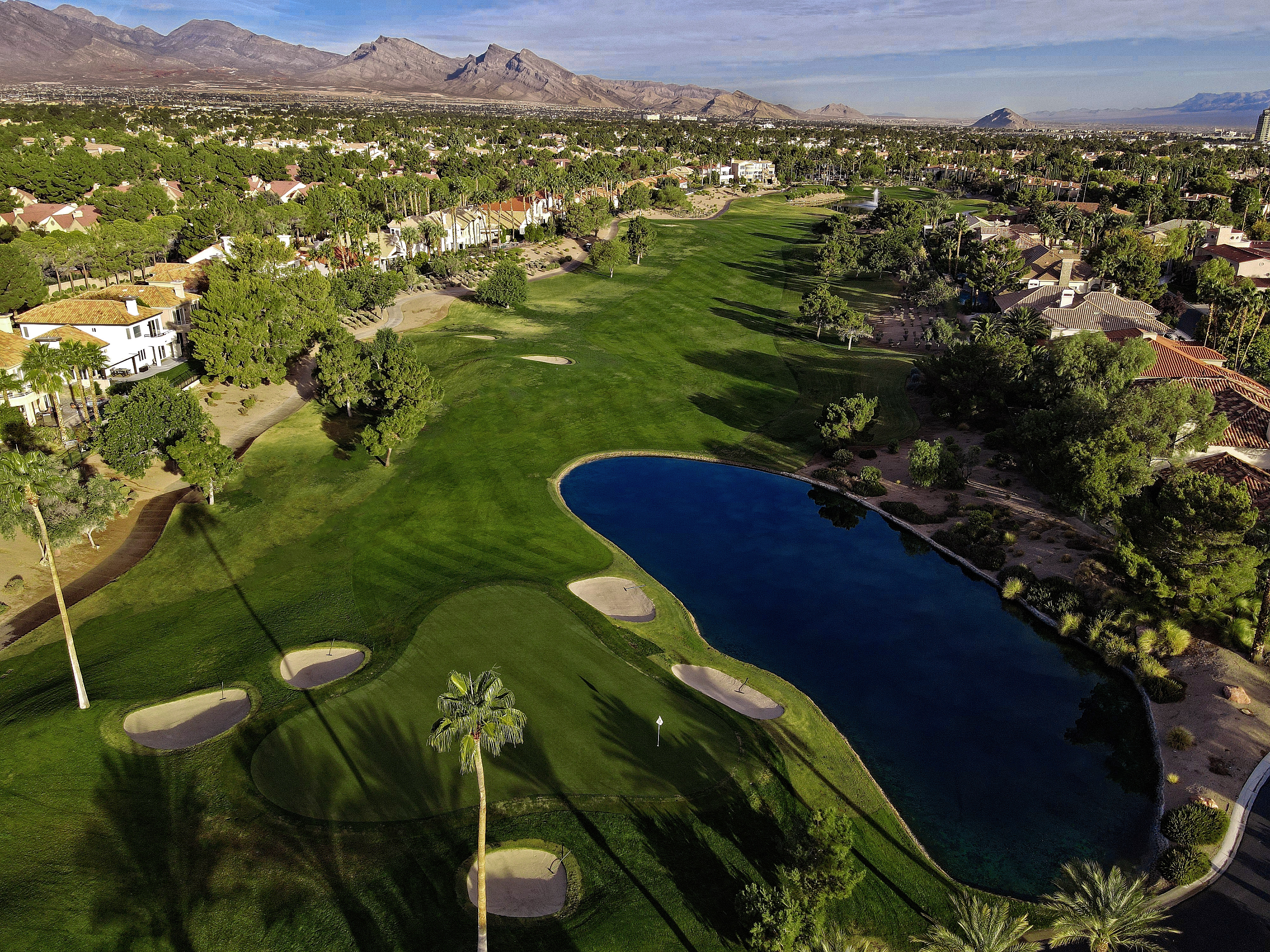 The golf course at Canyon Gate Country Club was designed by renowned golf architect, Ted Robinson. This 18-hole championship-caliber golf course is the ultimate expression of uncompromising standards that Ted Robinson guarantees. Located just minutes away from the Las Vegas Strip, the course features tranquil lagoons and carefully blends with the native Nevada landscape. Canyon Gate provides a challenging, yet entertaining, layout for golfers of all skill levels.