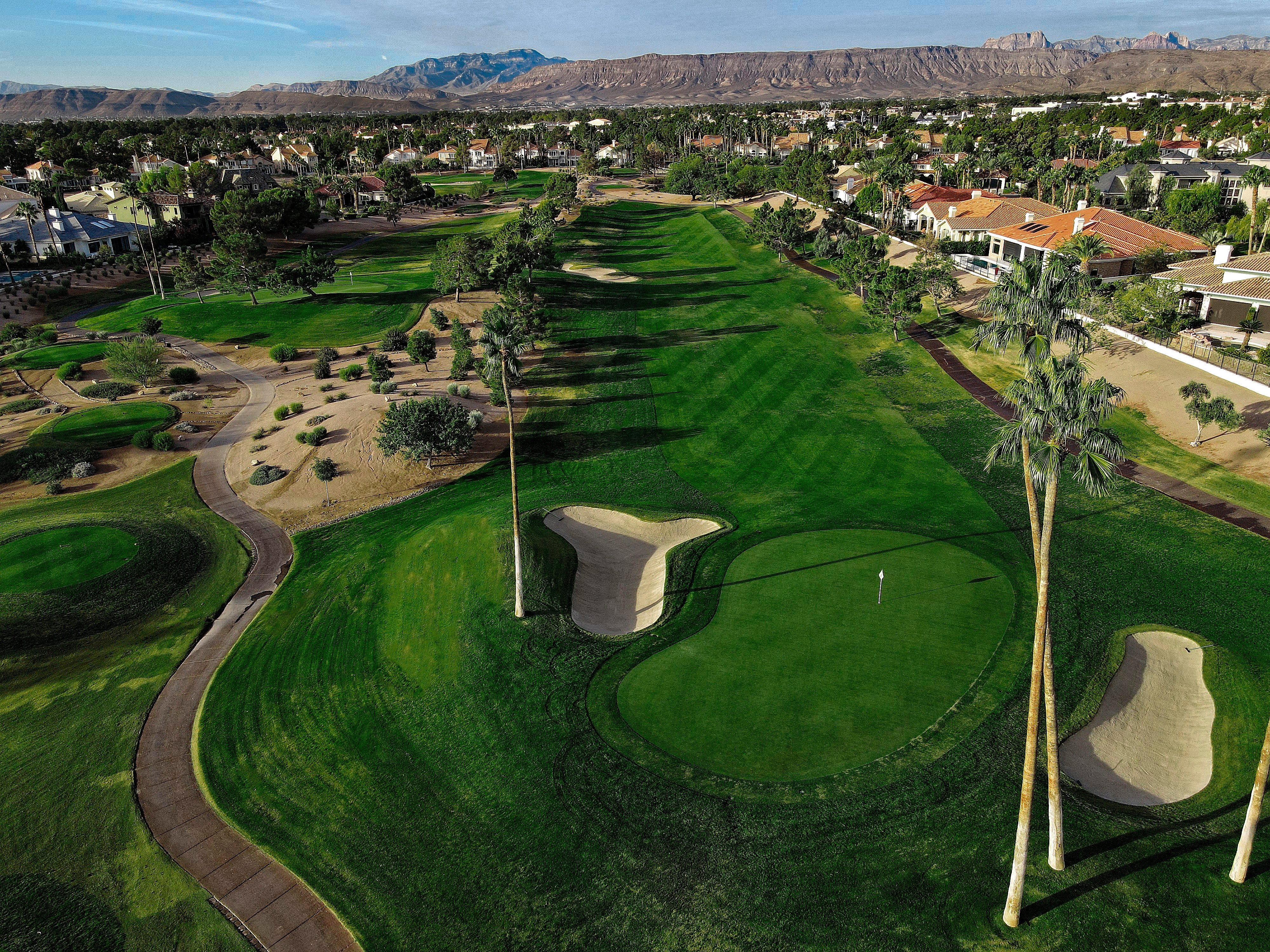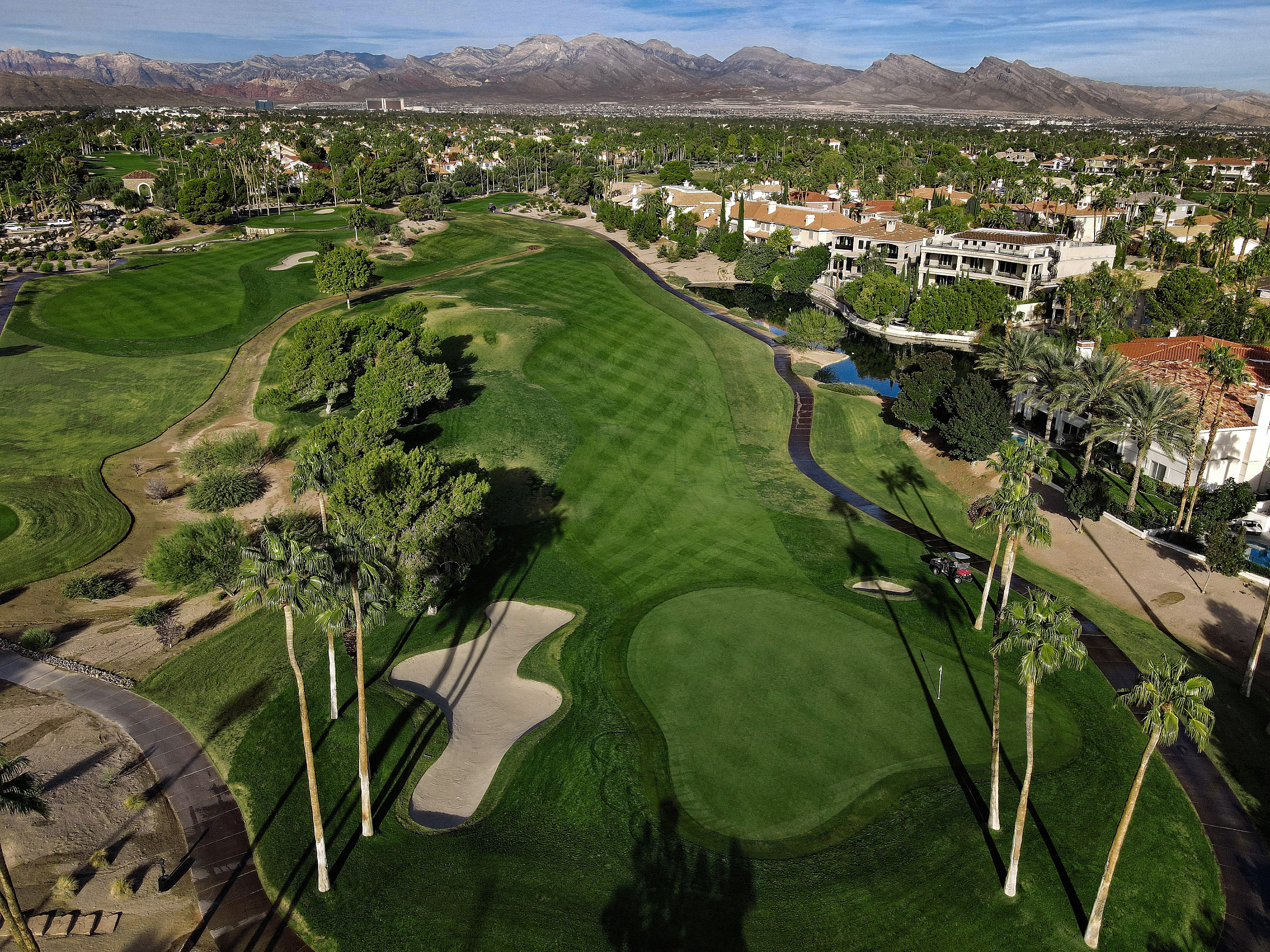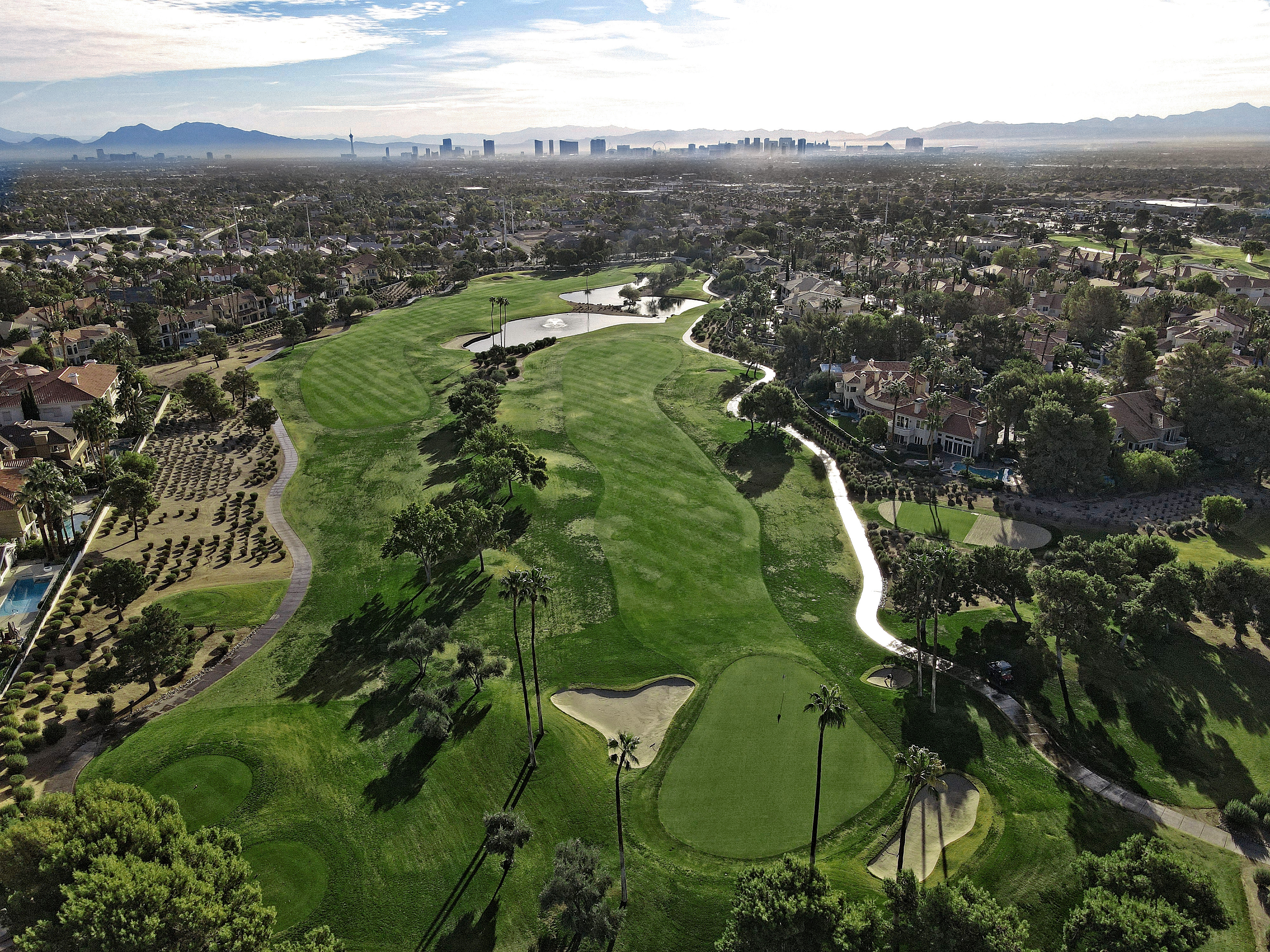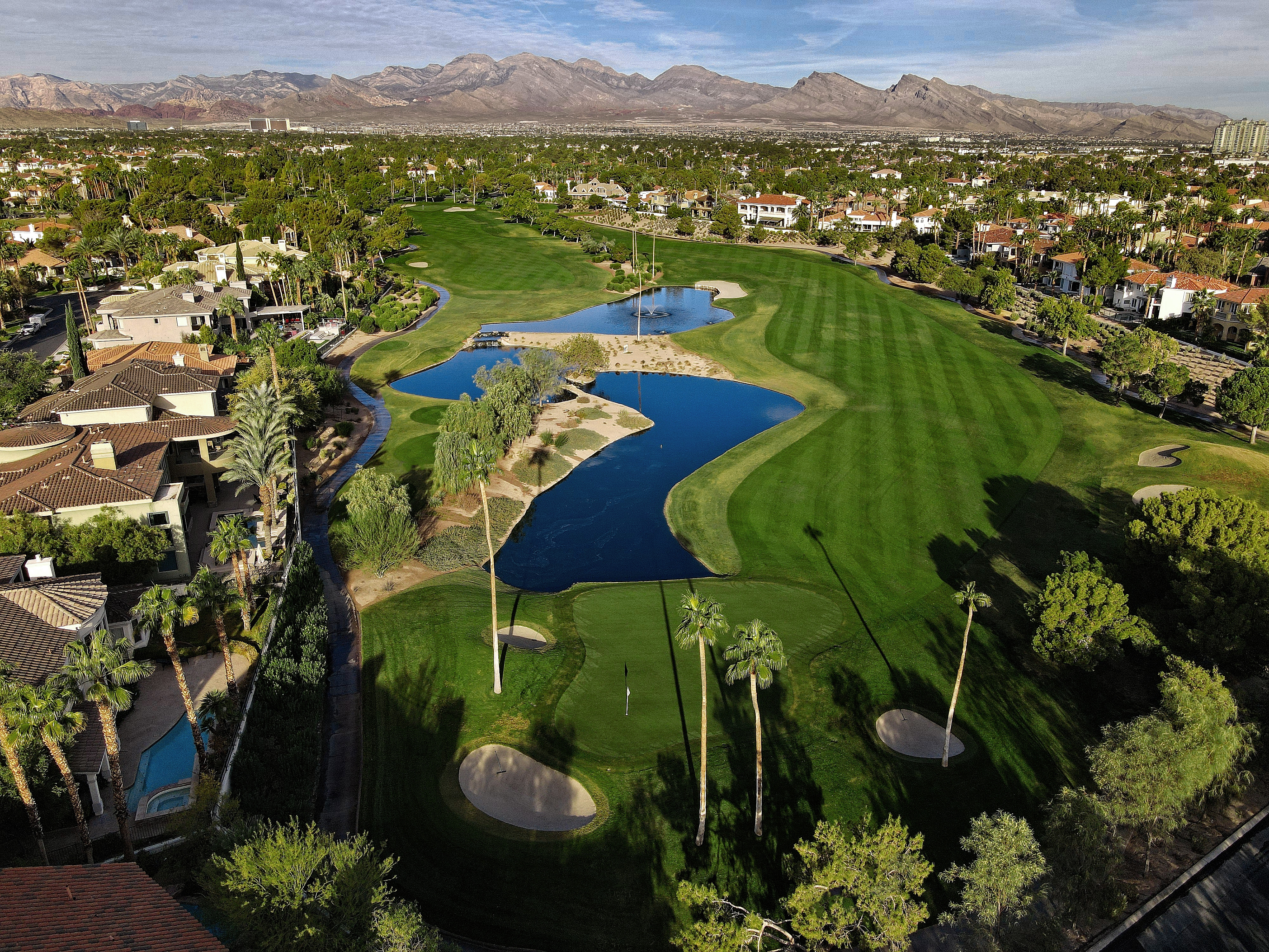 The golf course at Canyon Gate Country Club was designed by renowned golf architect, Ted Robinson. This 18-hole championship-caliber golf course is the ultimate expression of uncompromising standards that Ted Robinson guarantees. Located just minutes away from the Las Vegas Strip, the course features tranquil lagoons and carefully blends with the native Nevada landscape. Canyon Gate provides a challenging, yet entertaining, layout for golfers of all skill levels.