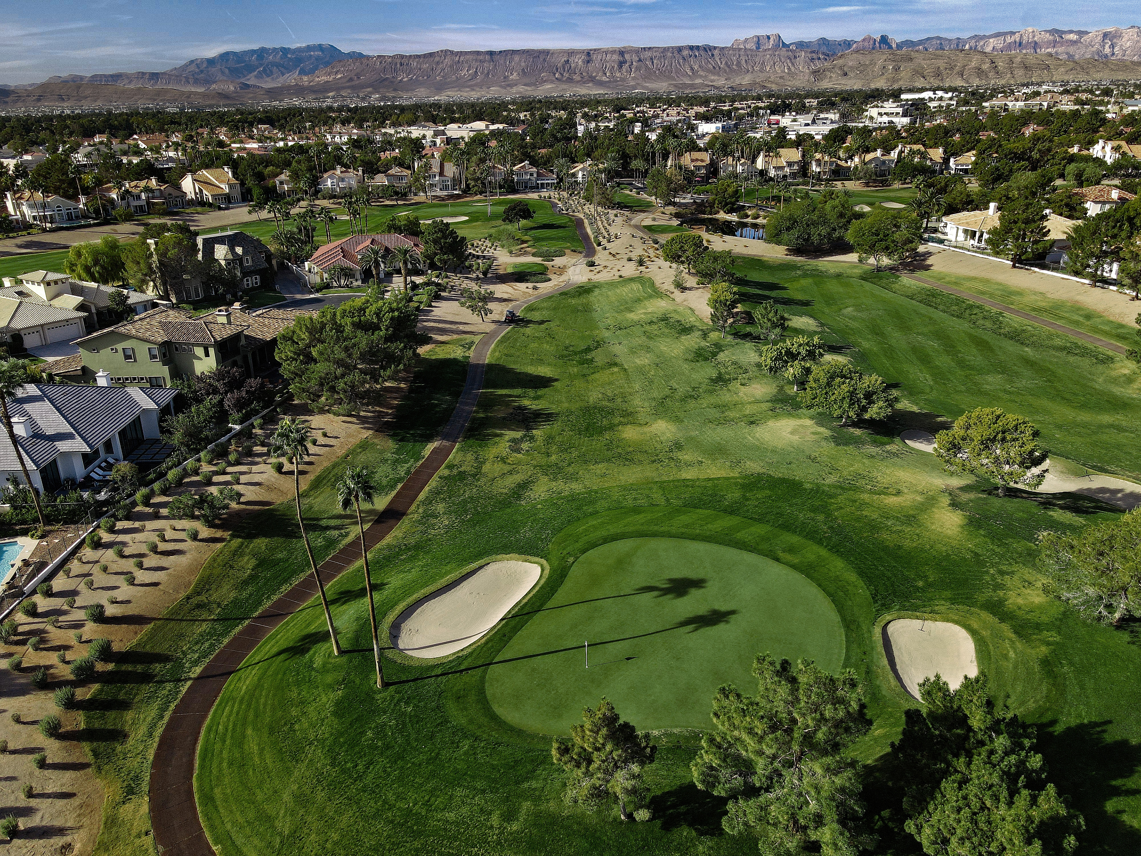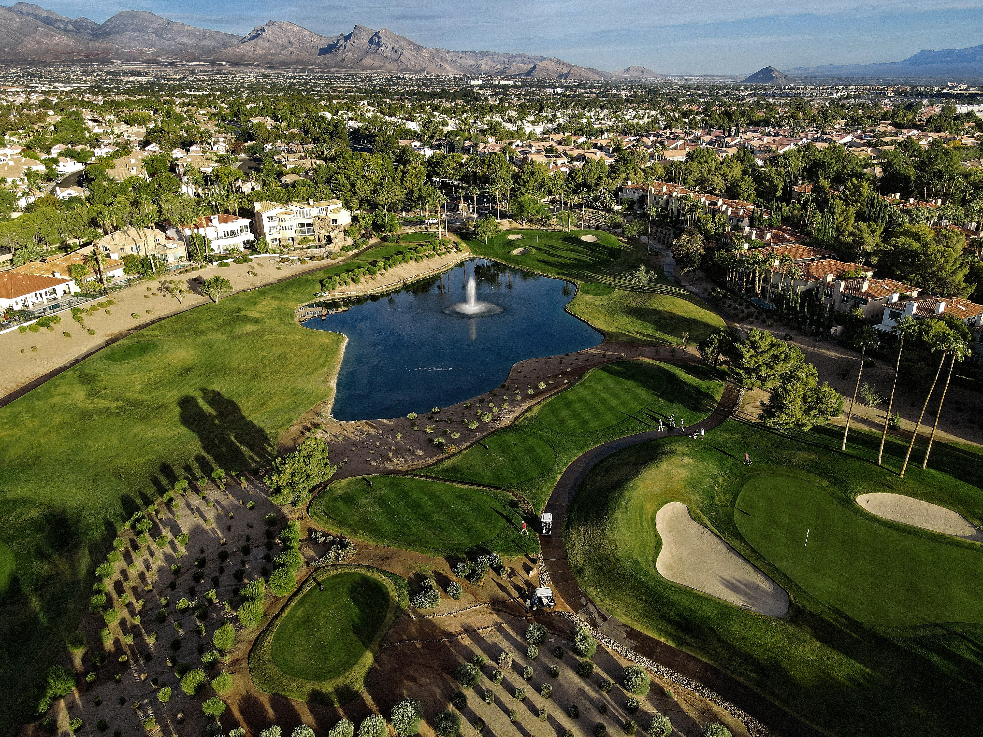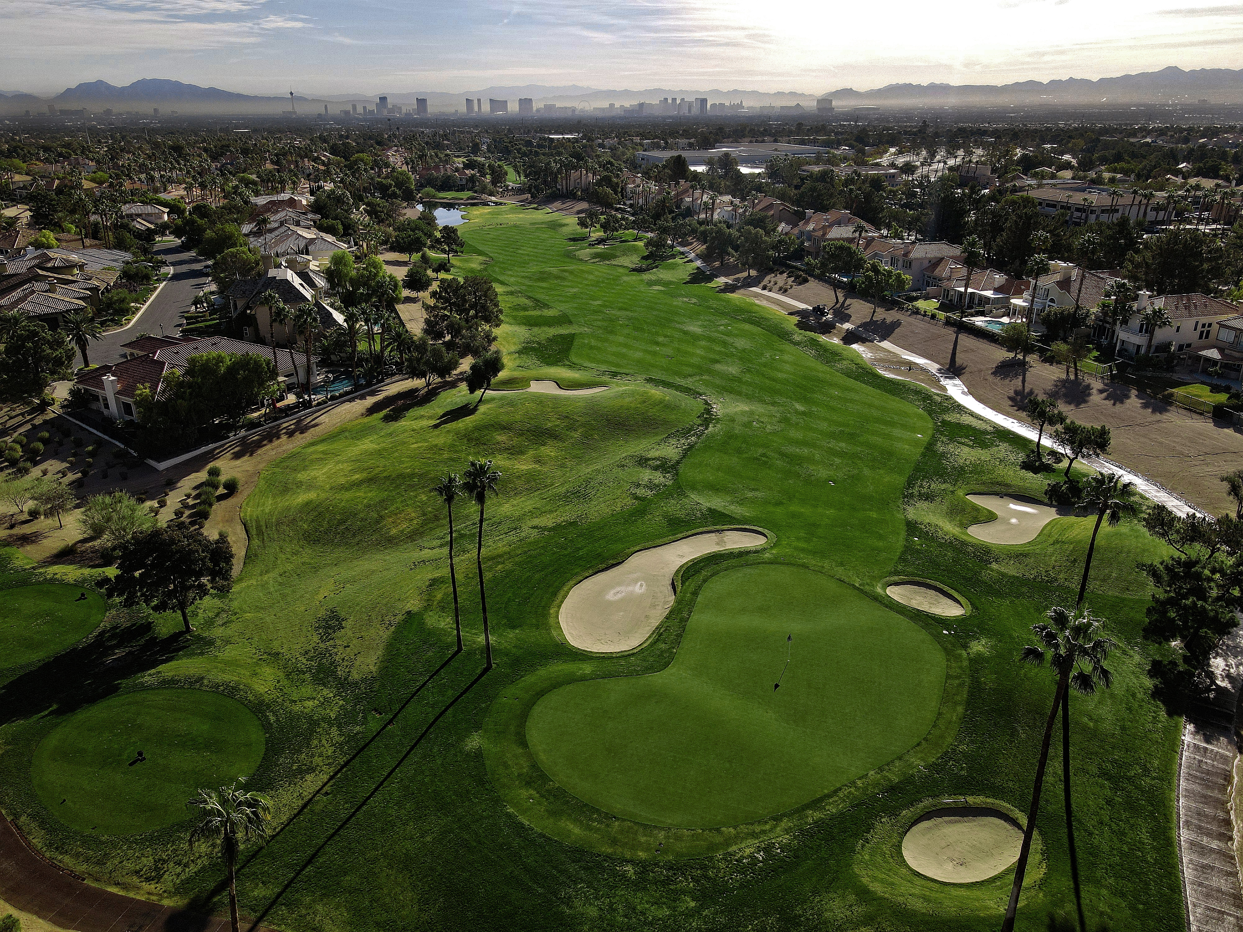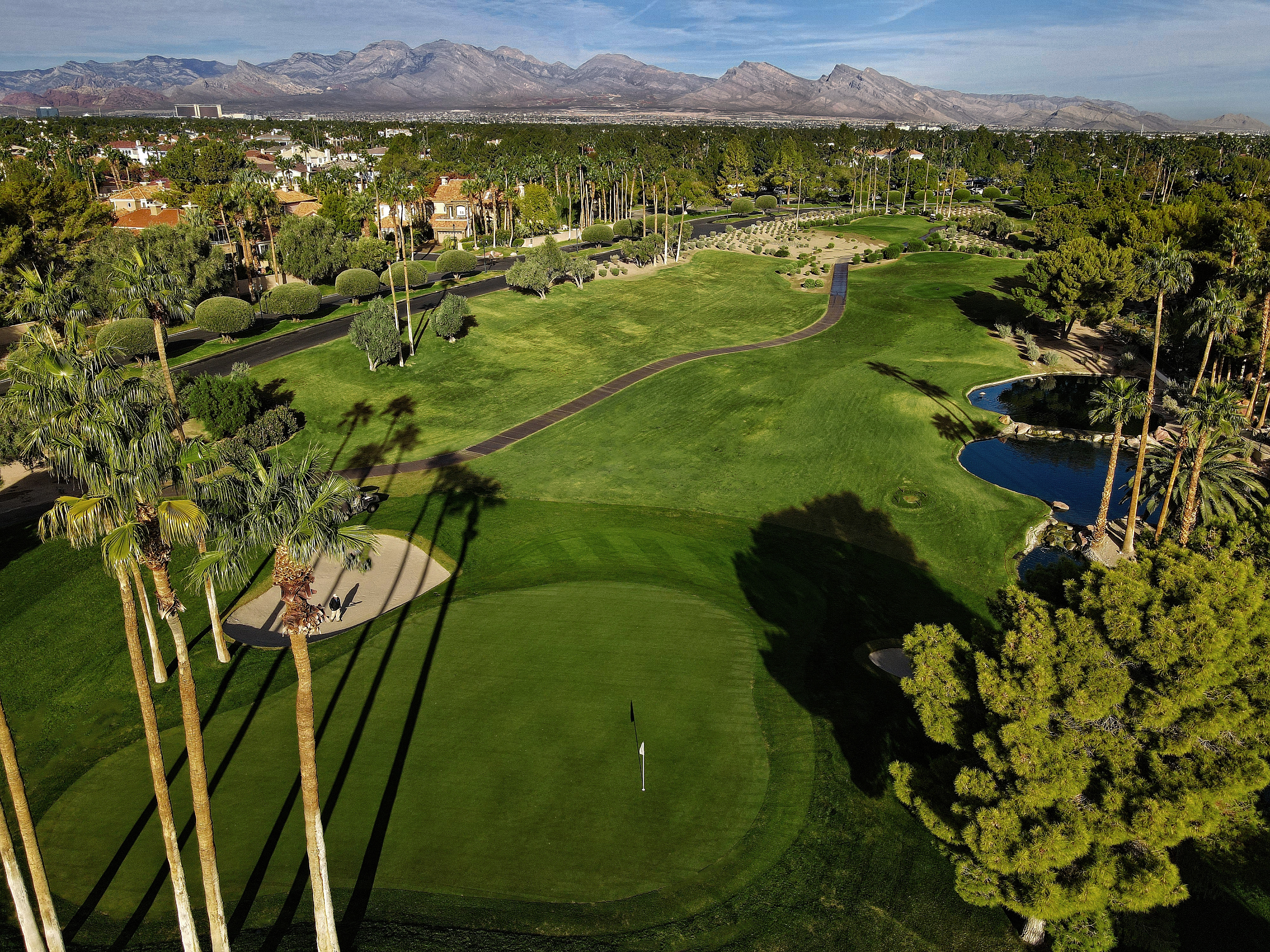 The golf course at Canyon Gate Country Club was designed by renowned golf architect, Ted Robinson. This 18-hole championship-caliber golf course is the ultimate expression of uncompromising standards that Ted Robinson guarantees. Located just minutes away from the Las Vegas Strip, the course features tranquil lagoons and carefully blends with the native Nevada landscape. Canyon Gate provides a challenging, yet entertaining, layout for golfers of all skill levels.
