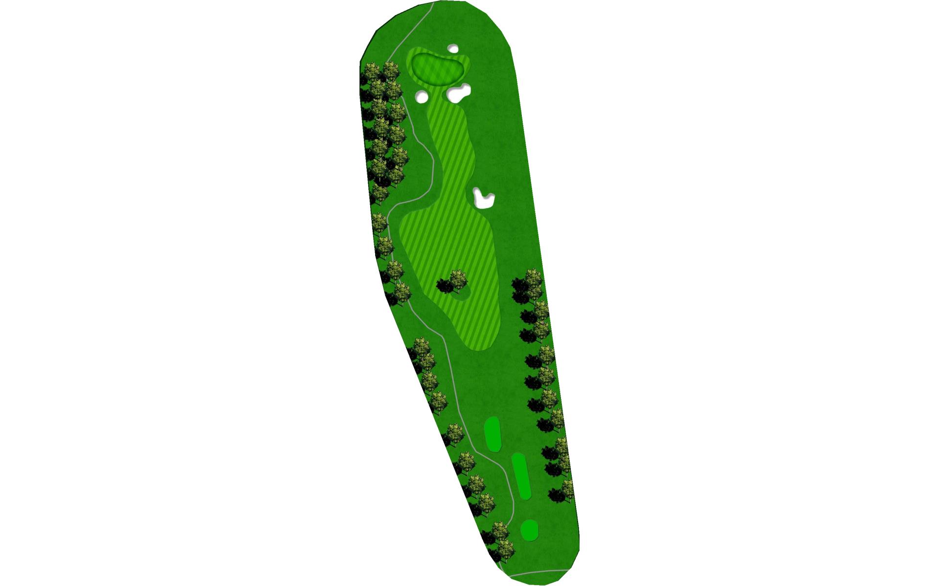 Twelve is a true three-shot par 5 that plays all the way uphill. The tee shot goes through a shoot of trees to an elevated fairway. Then, a player needs to decide which side of the split fairway to attack the green. The best approach shots will stay below the hole.