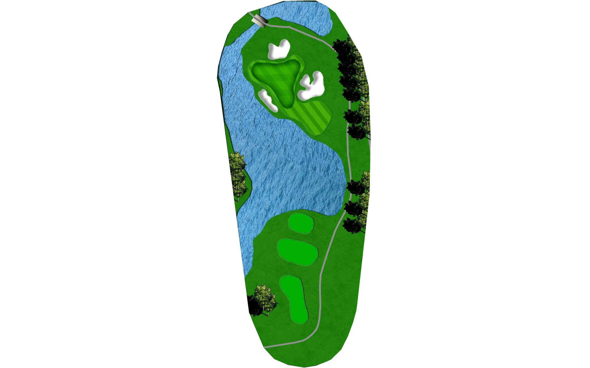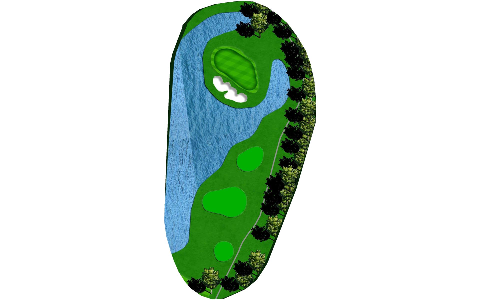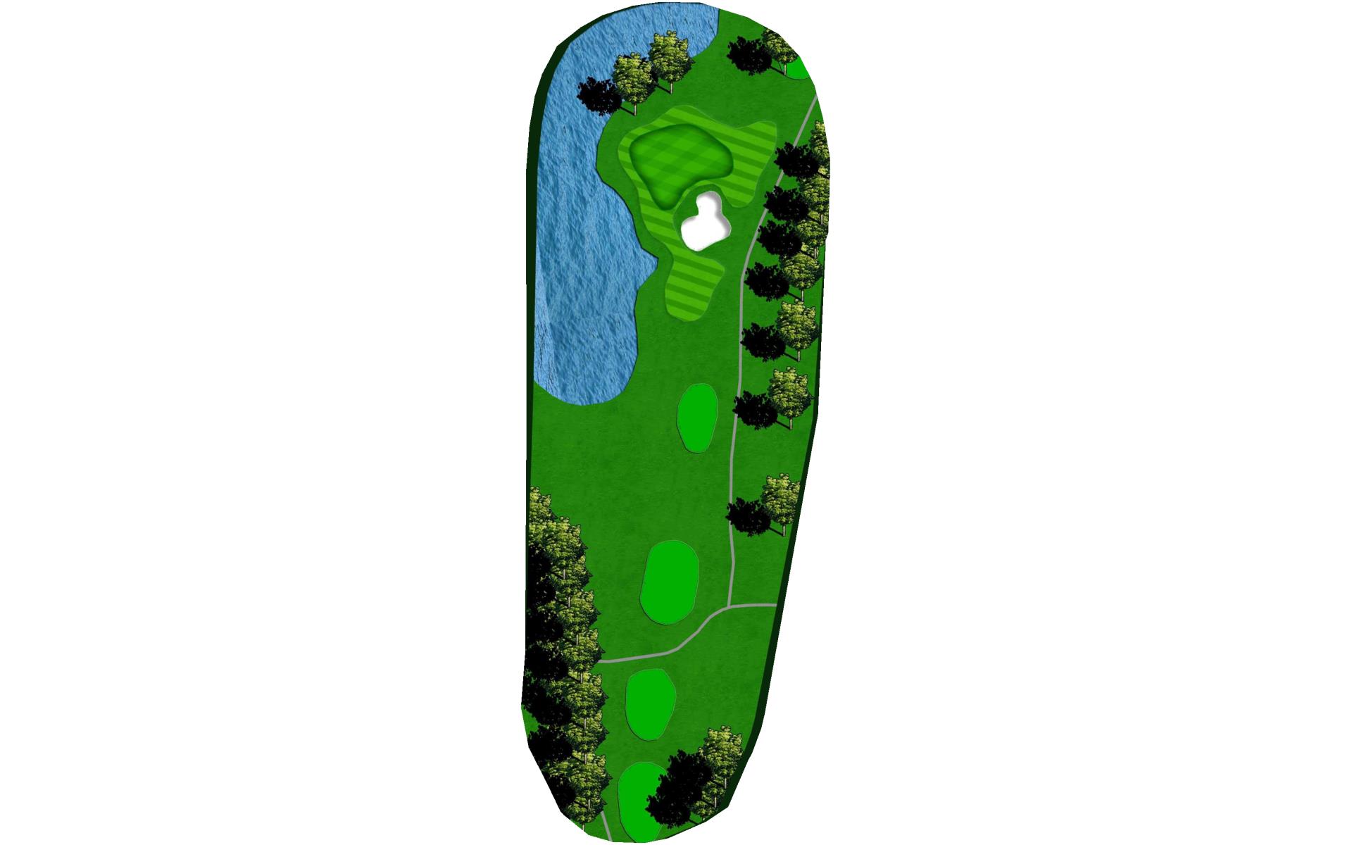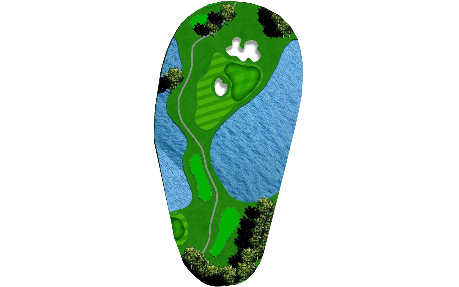 With a forced carry off the tee and water down the entire left side, this is the hardest hole on the course. Aim your tee shot just short of the bunker to leave yourself a 125 to 175 yard shot to the green. With a huge slope in the middle of the green, your approach shot should land near the front of the green if you wish to have a putt for birdie.