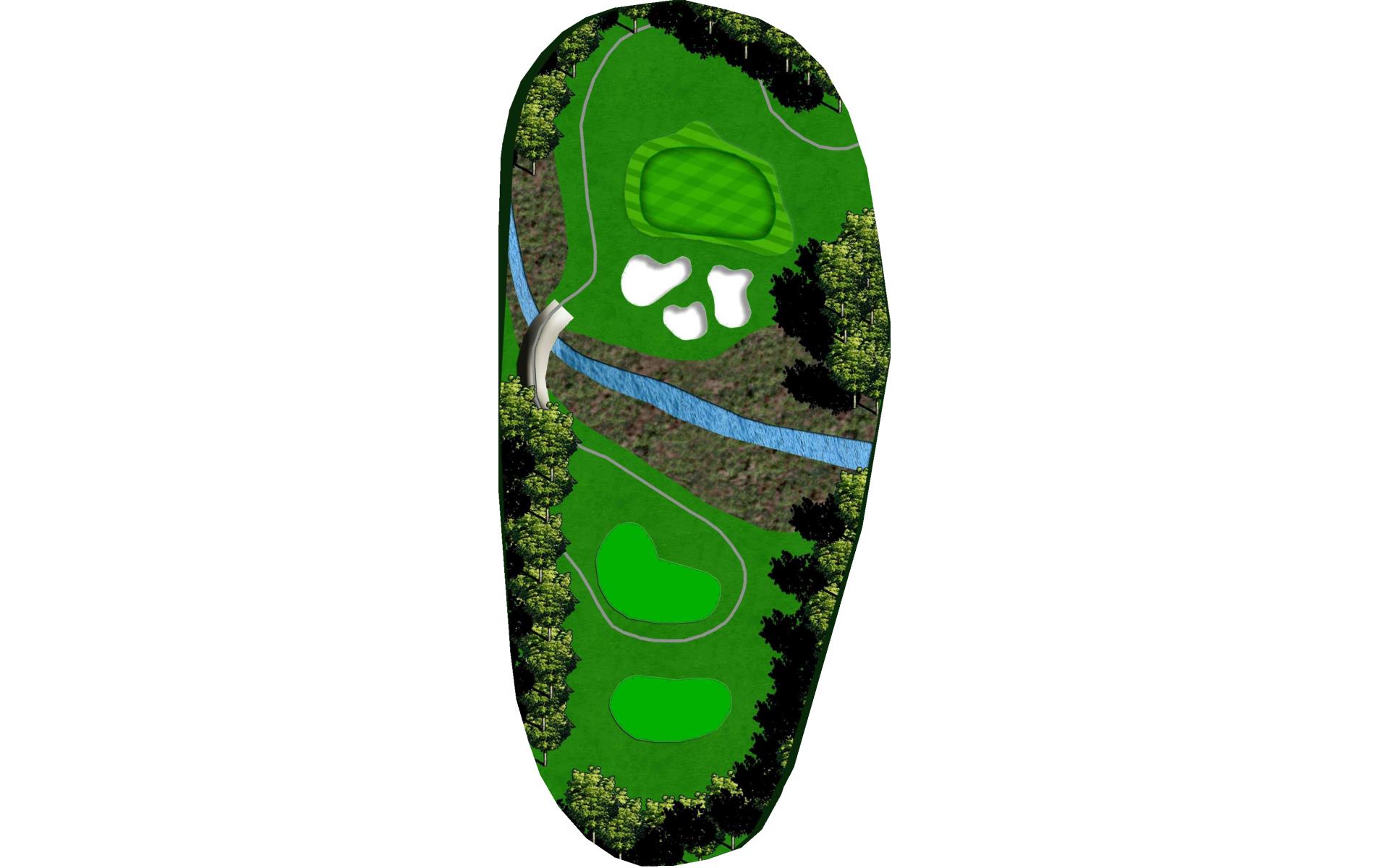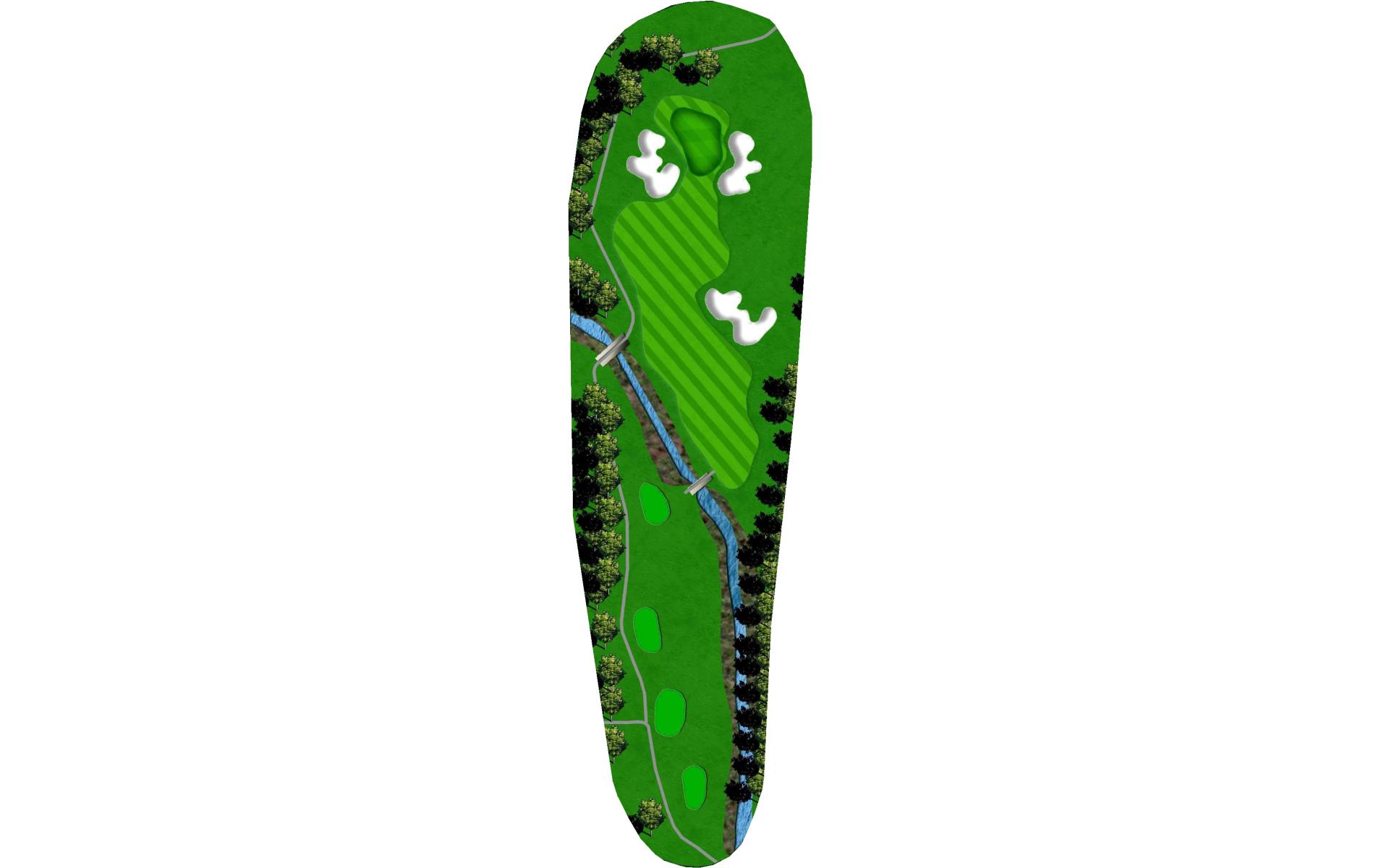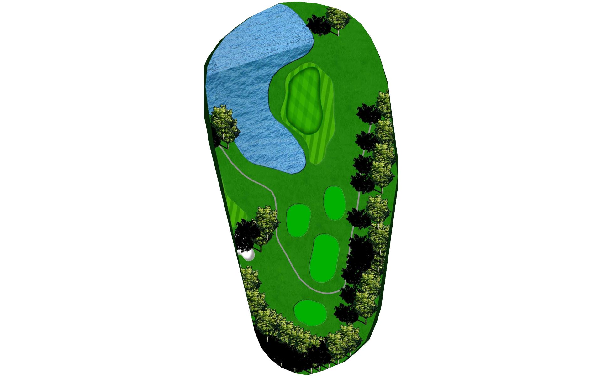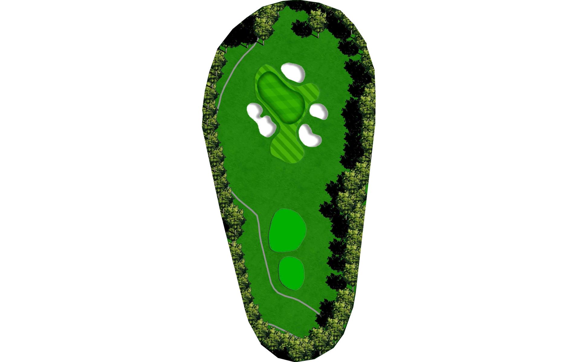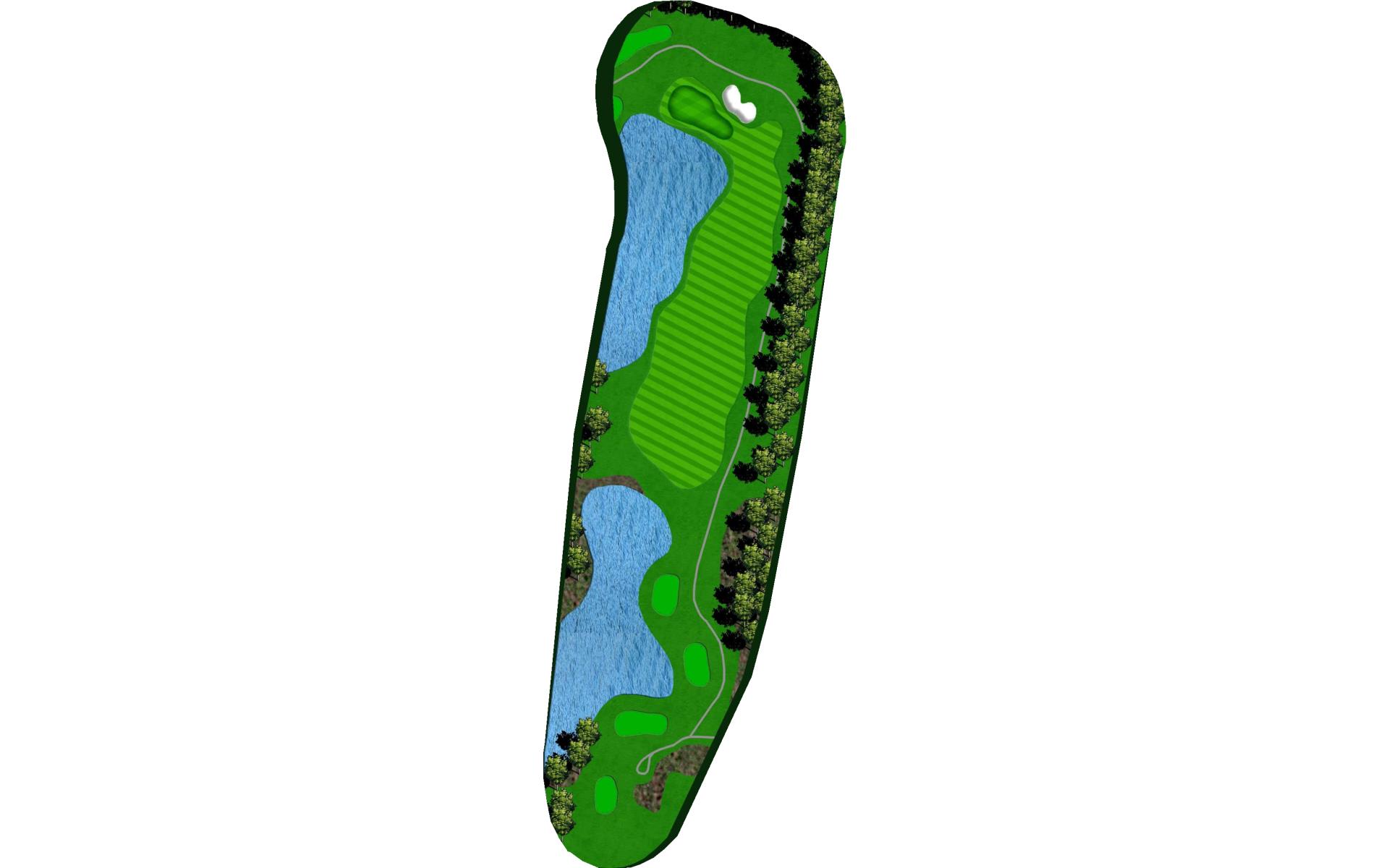 With a forced carry off the tee and water down the entire left side, this is the hardest hole on the course. Aim your tee shot just short of the bunker to leave yourself a 125 to 175 yard shot to the green. With a huge slope in the middle of the green, your approach shot should land near the front of the green if you wish to have a putt for birdie.