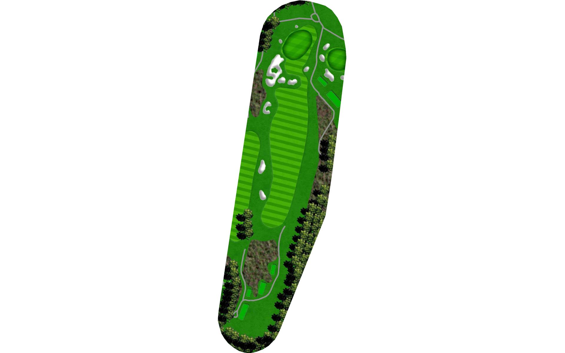 Drive it down the middle as you are then challenge with a tricky second shot. The green is the main defense as the green has many different pin locations. Second shot placement is the most important aspect of the hole. If not a 3 putt is in your future