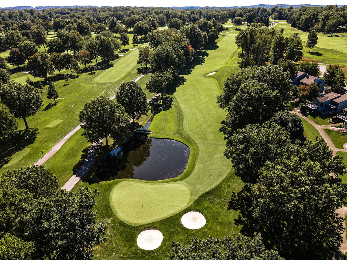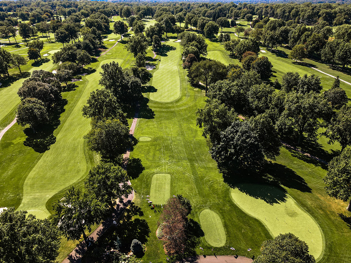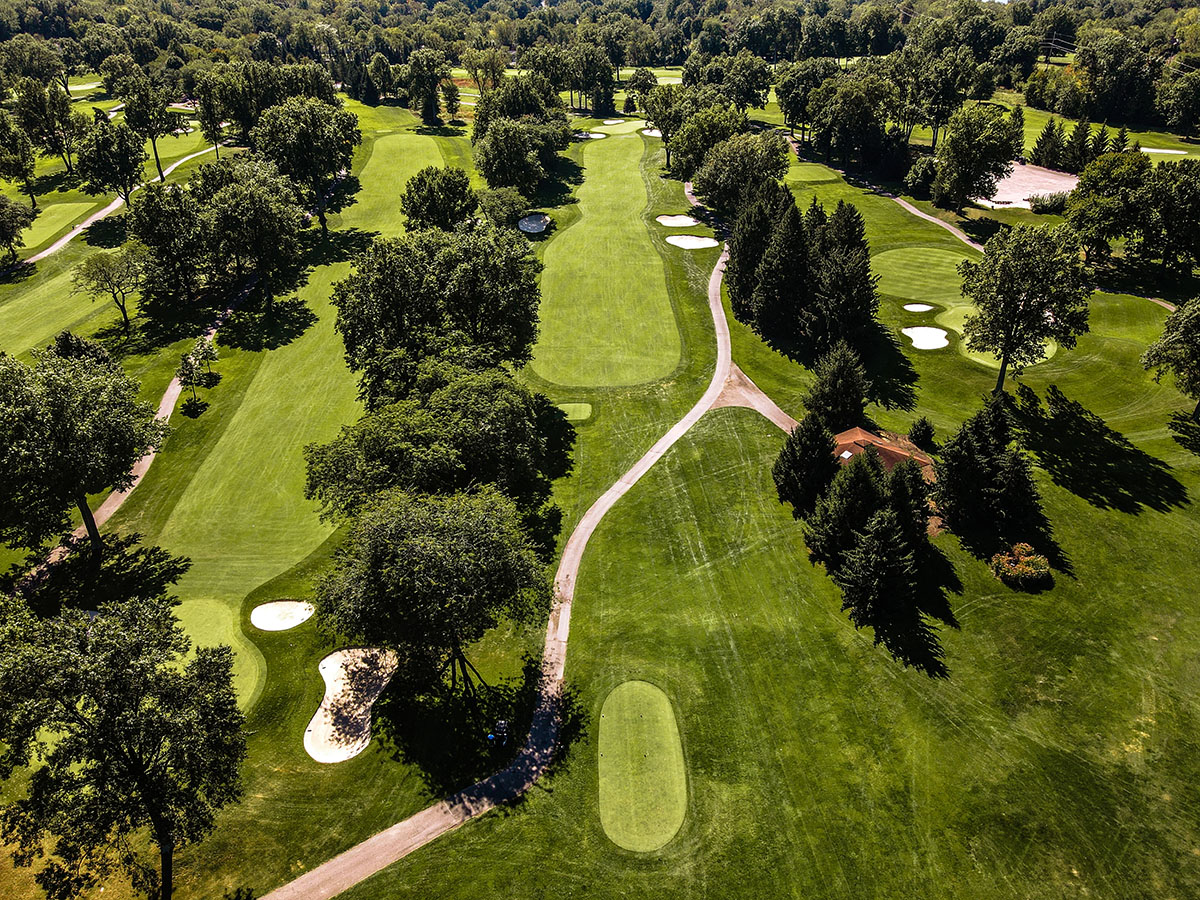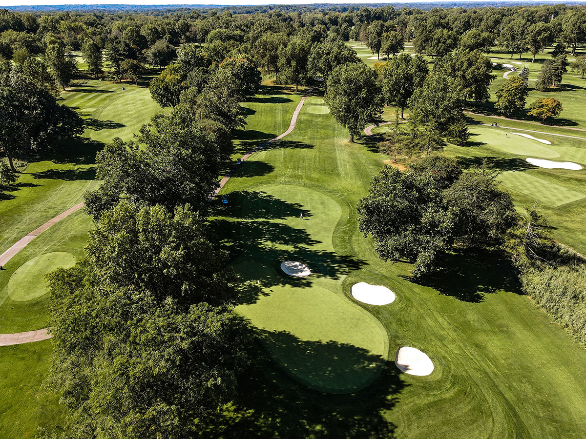 This straight but long Par 4th closes out the front nine at the base of the clubhouse. A tee shot in the fairway is the best chance to attack this tricky protected green. Three deep bunkers surround the green. The green itself has a severe false front as well as a couple of collection areas that will test your putting skills.