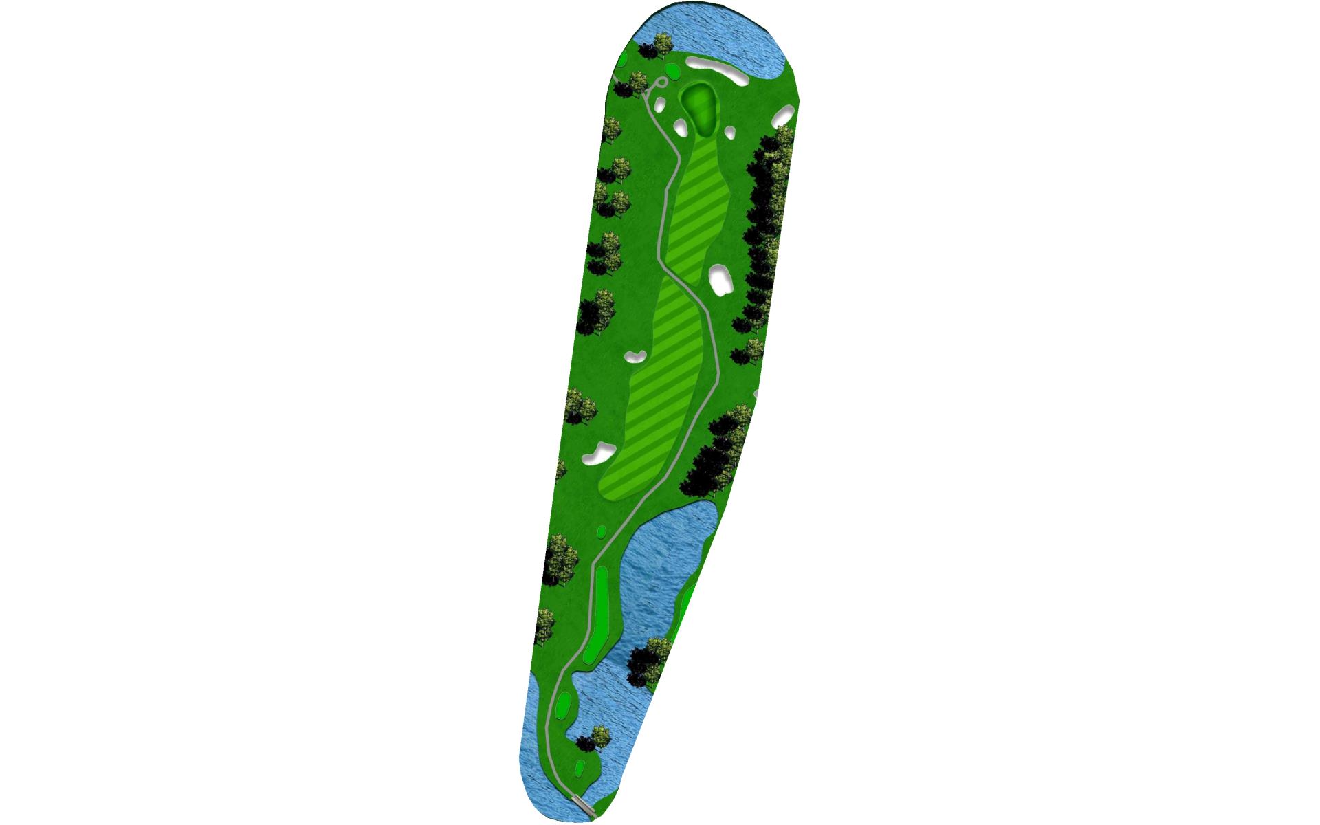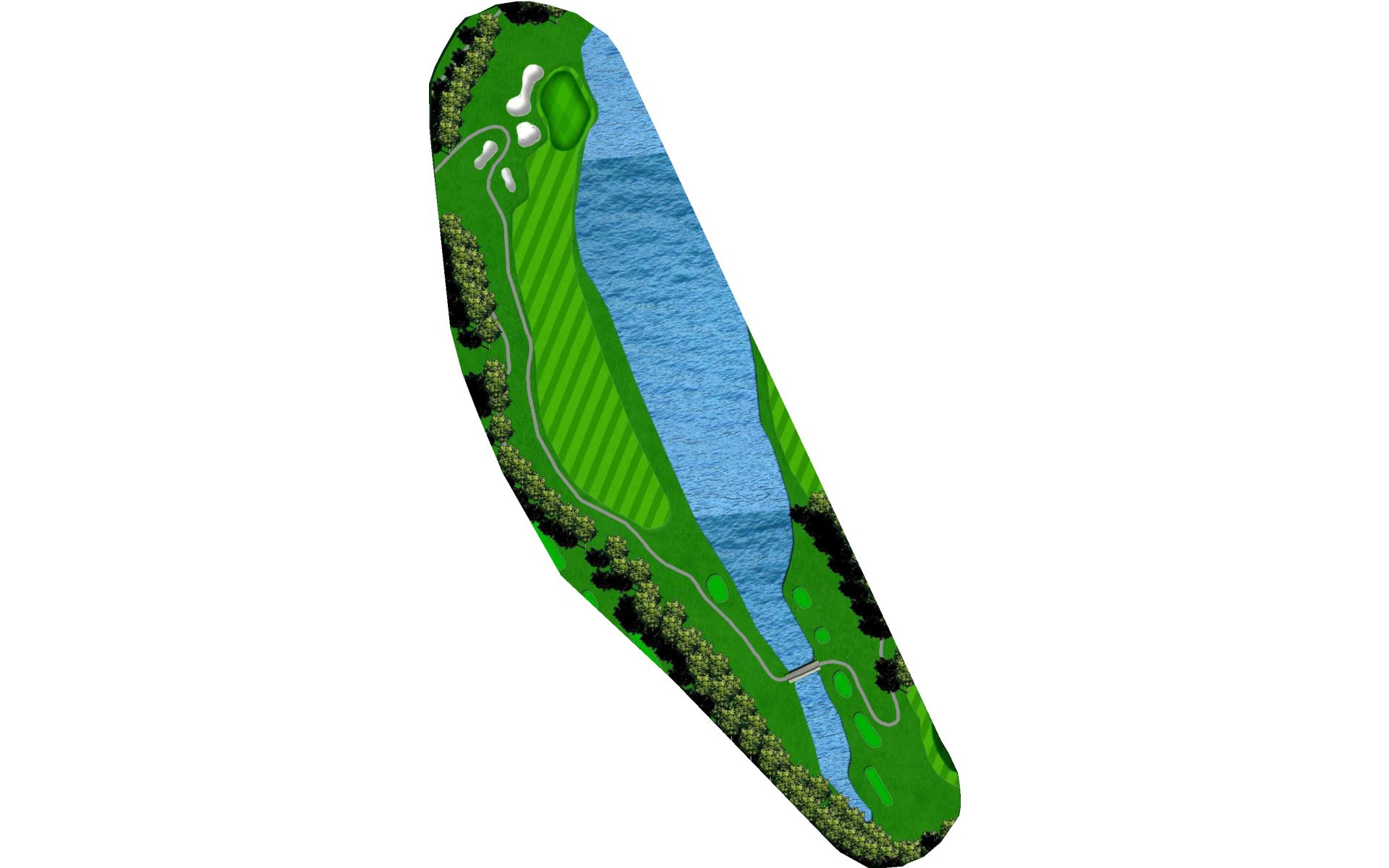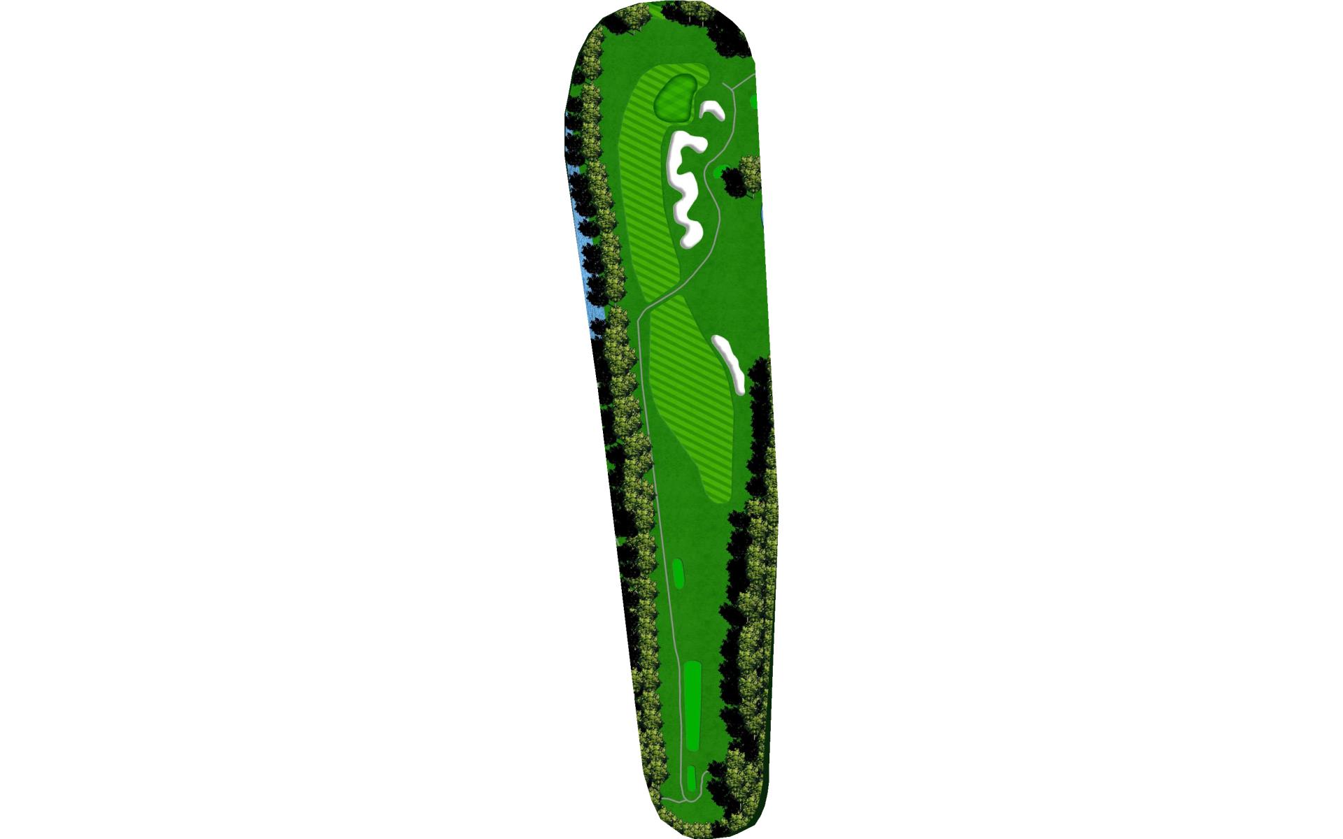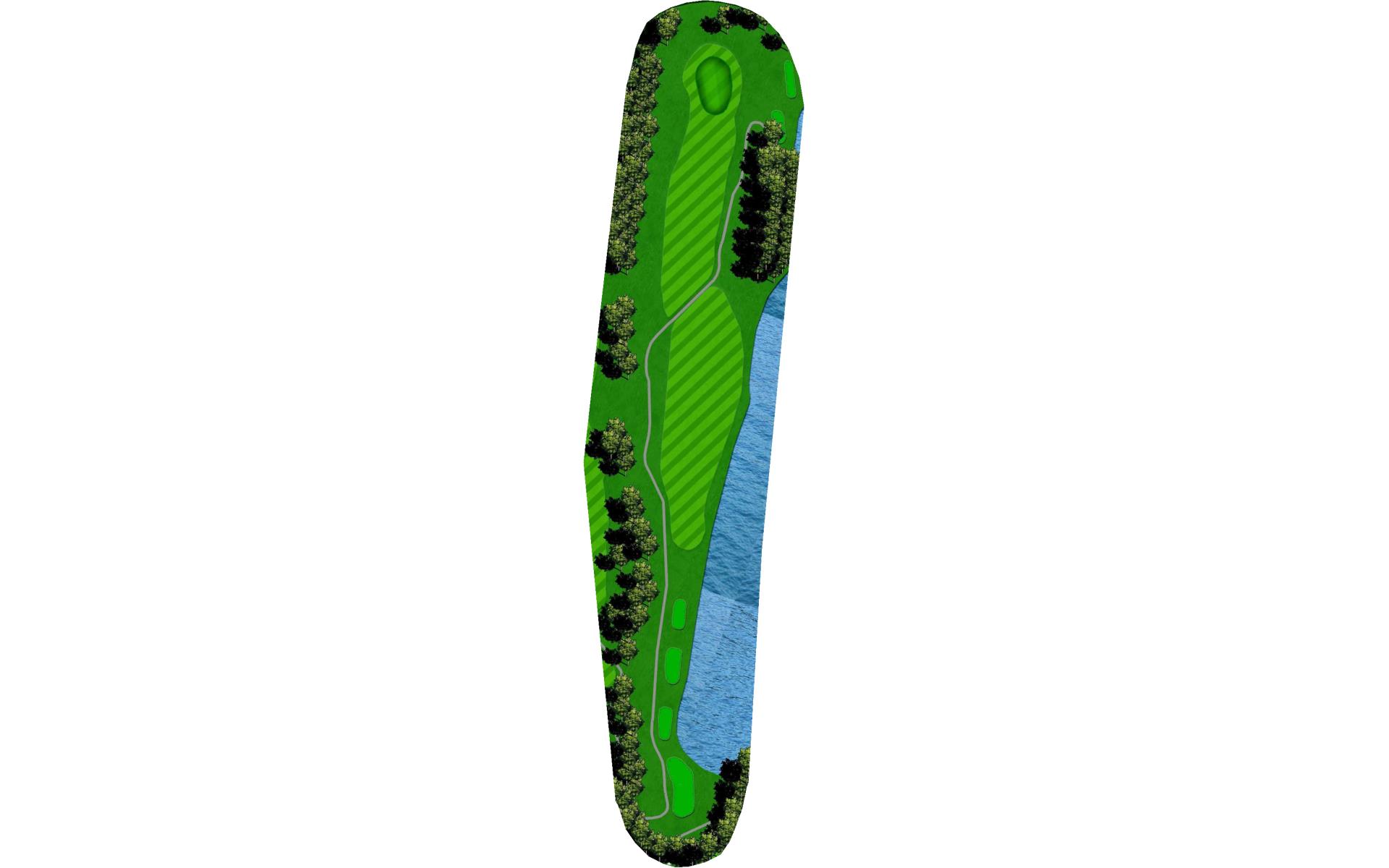 The shortest of the par 5s. This very reachable par 5 has many options but only one strategy: You have to go for the green. The tee shot is aimed at the lonesome tree on the left side of the fairway. From the left side, the green opens up to a long go-for-it approach. An errant shot by the green may be better than a lay-up approach shot from across the water, but why? Have fun with the three shot wherever it is.