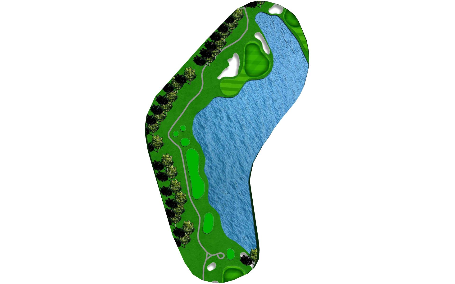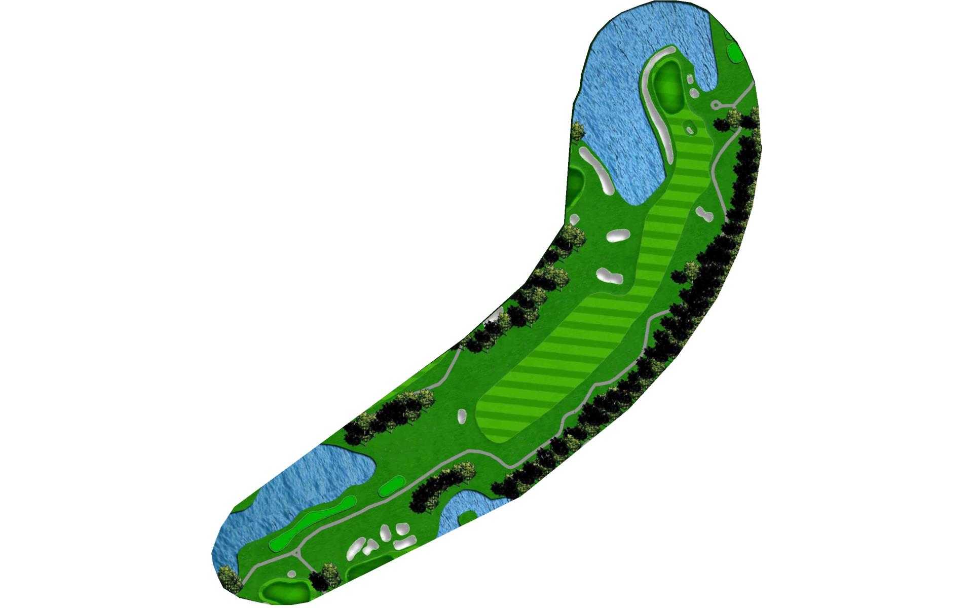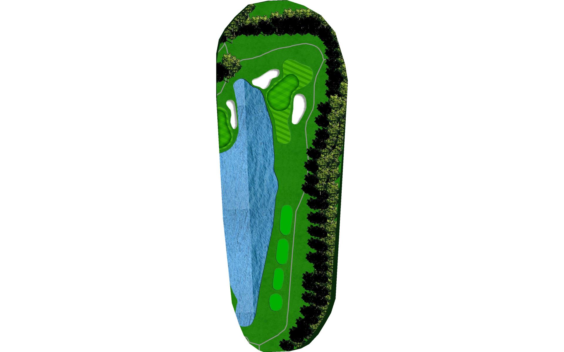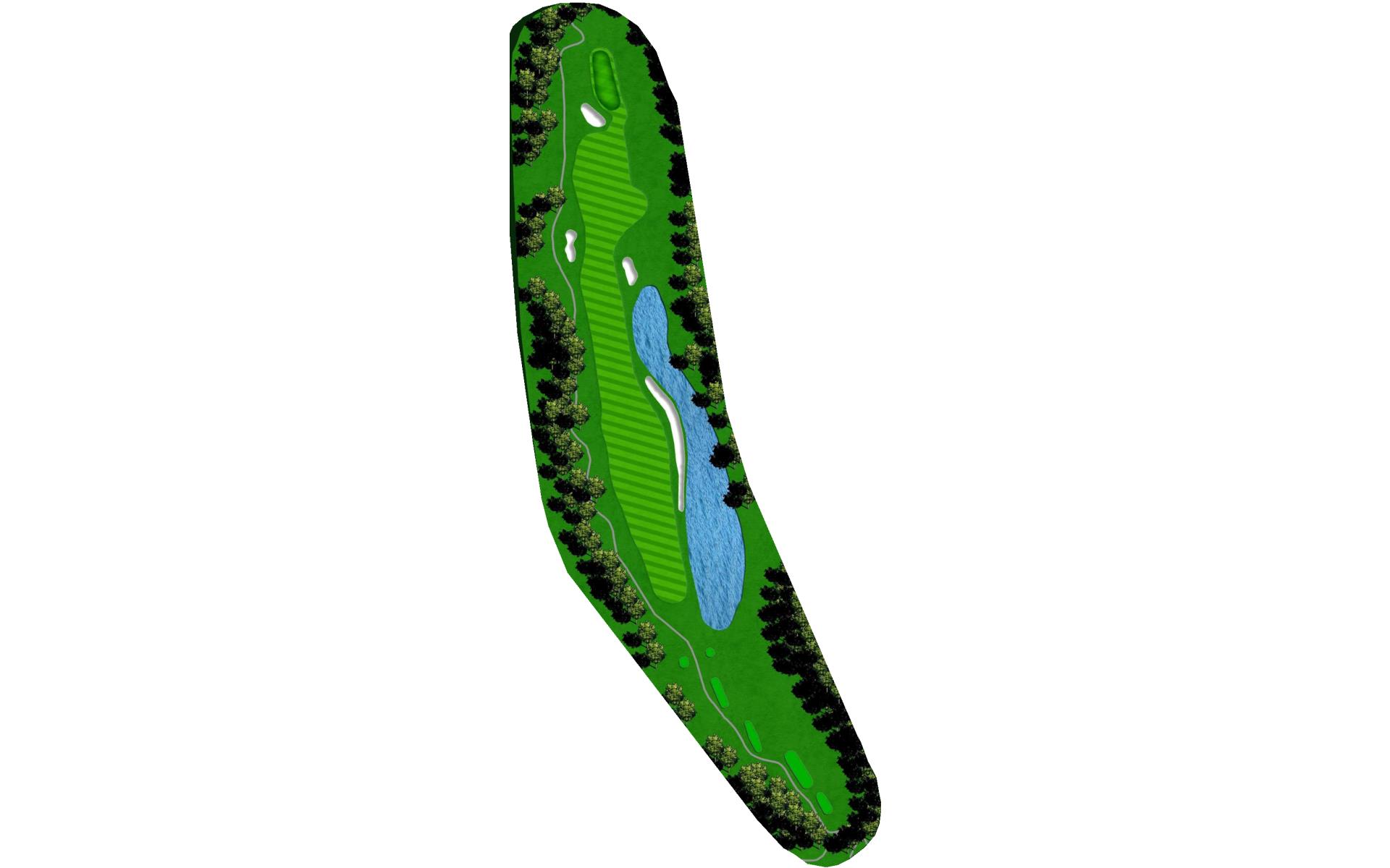 The shortest of the par 5s. This very reachable par 5 has many options but only one strategy: You have to go for the green. The tee shot is aimed at the lonesome tree on the left side of the fairway. From the left side, the green opens up to a long go-for-it approach. An errant shot by the green may be better than a lay-up approach shot from across the water, but why? Have fun with the three shot wherever it is.