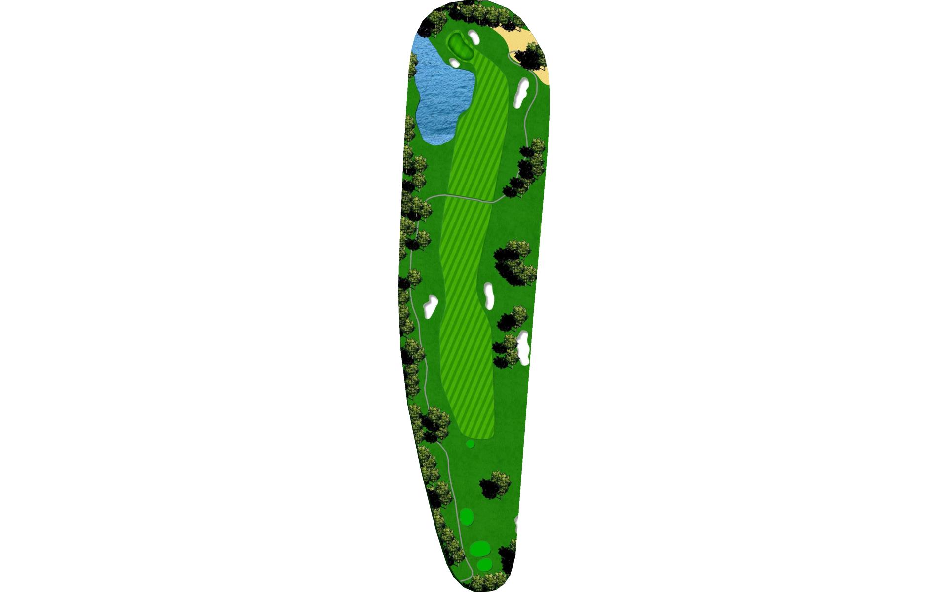 Dog-leg left risk reward - cut the corner and o.b. is in play. Get your second shot on the green as par is a solid score on this hole.