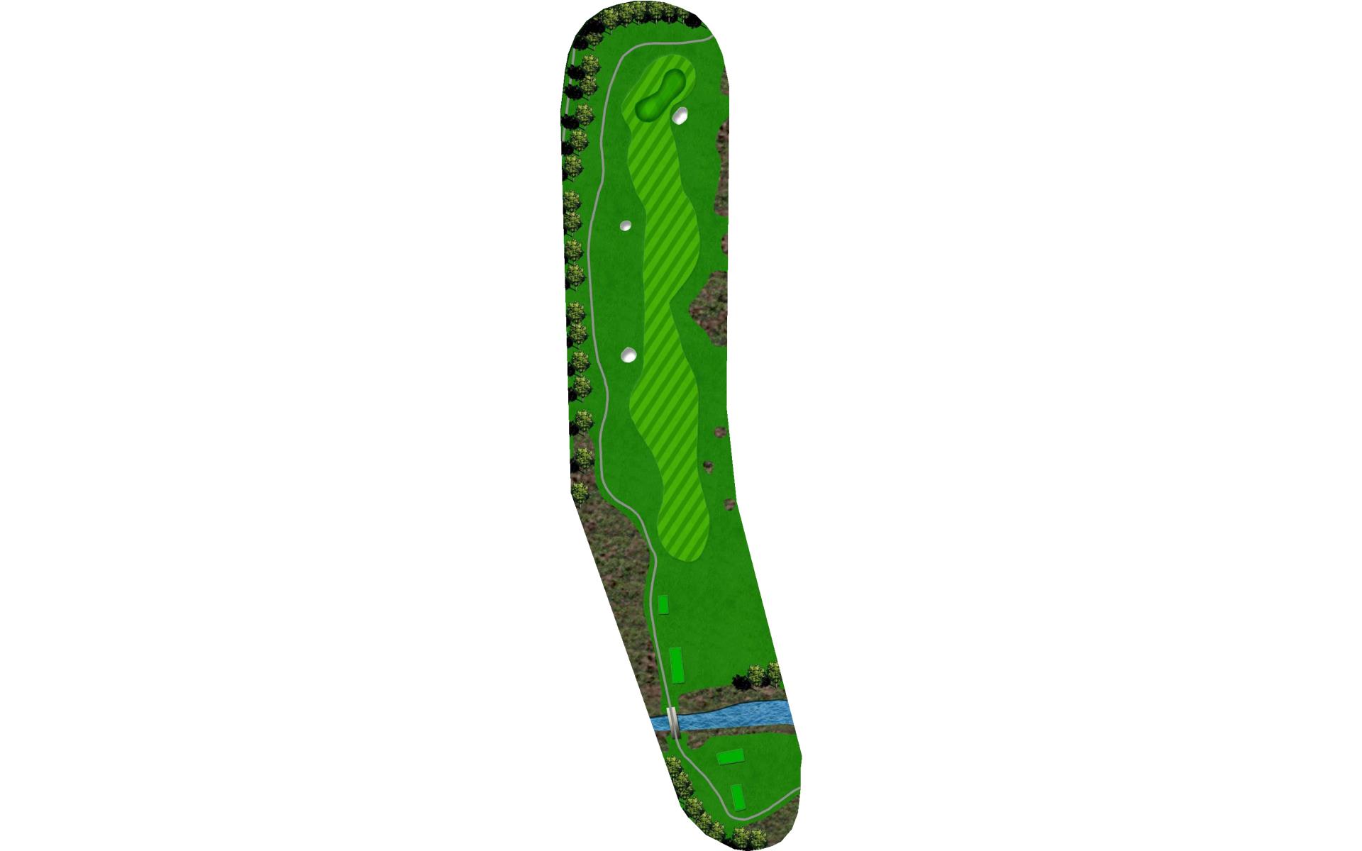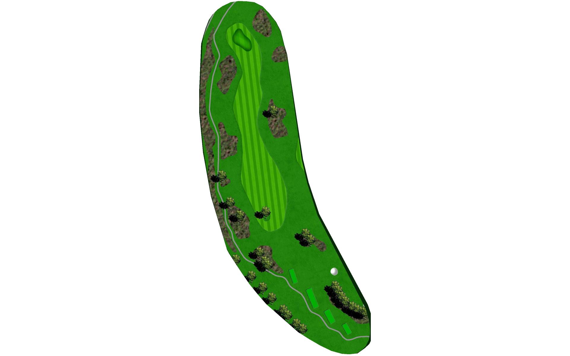 You can hit it almost anywhere on this bunkerless hole and have a go at the green, unless you’re unfortunate and hit the only tree on the course. If you find that lonesome tree, head to the pro shop immediately for a lesson. The green has no immediate trouble around it but a par is well deserved because of the length.