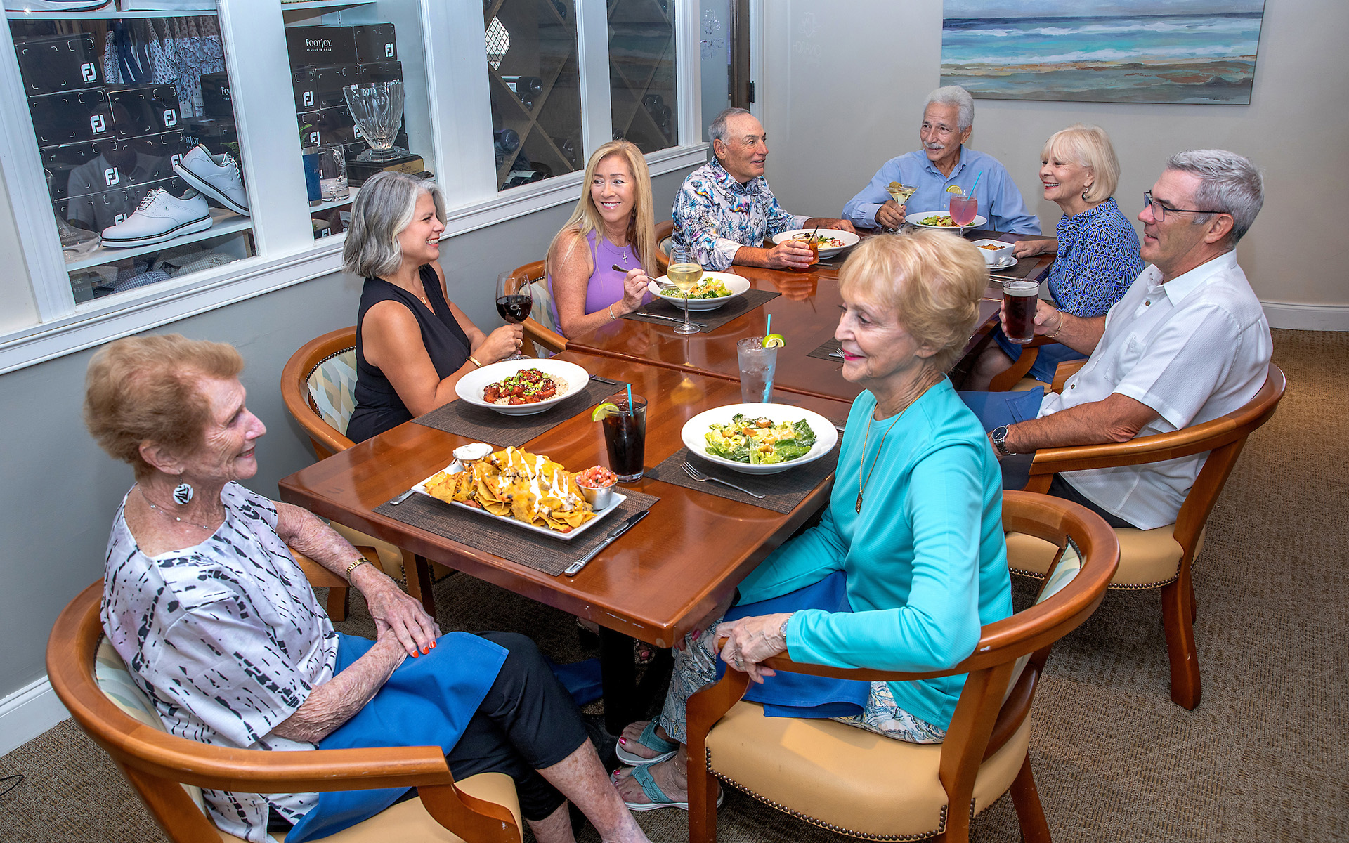 The Main Dining Room provides a comfortable setting for weddings, private events and special Member events and can also be partitioned to accommodate smaller events and business meetings. The Grille Room is a cozy place to gather with friends and enjoy casual fare. Whether you're watching golf's greats on the large-screen television or listening to stories about the day's golf games, you can relax and savor the moments you spend here. The Monarch Bar is a member favorite whether you are finishing a round of golf, getting together with family or friends to socialize, or enjoying Chef's cuisine.