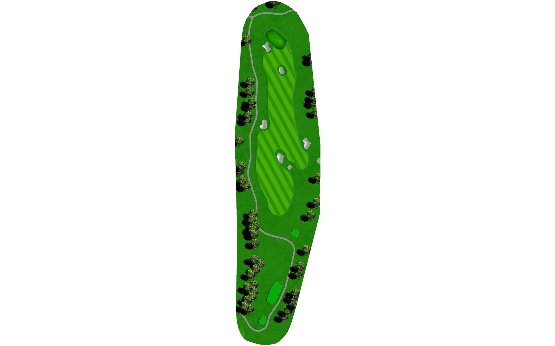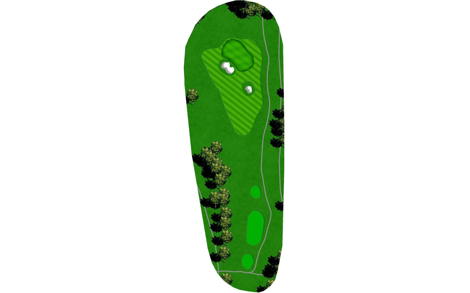 | This hole is a slightly uphill par 3 to a long, narrow green that breaks down and away from left-to-right. Sand guards the putting surface in front. |
