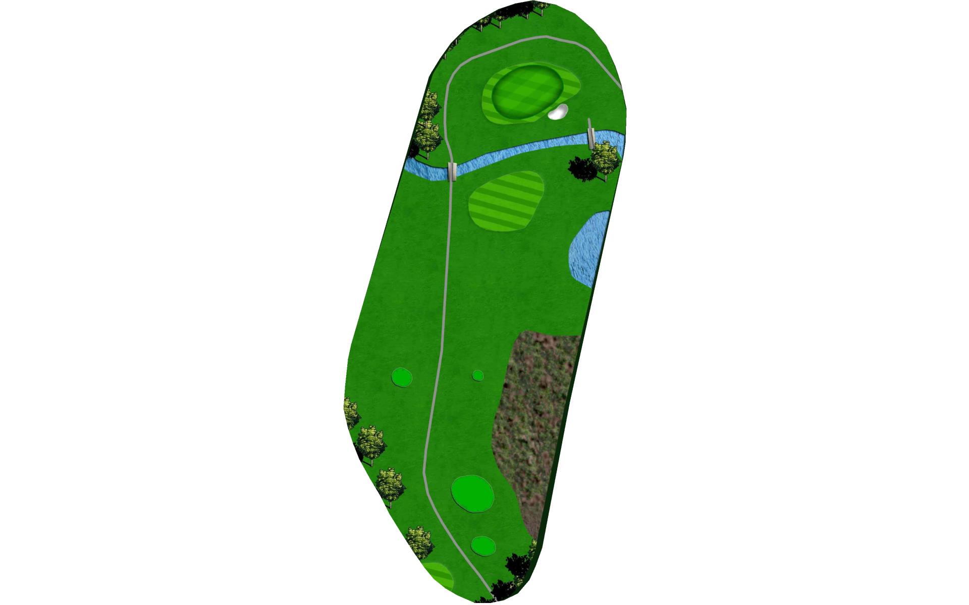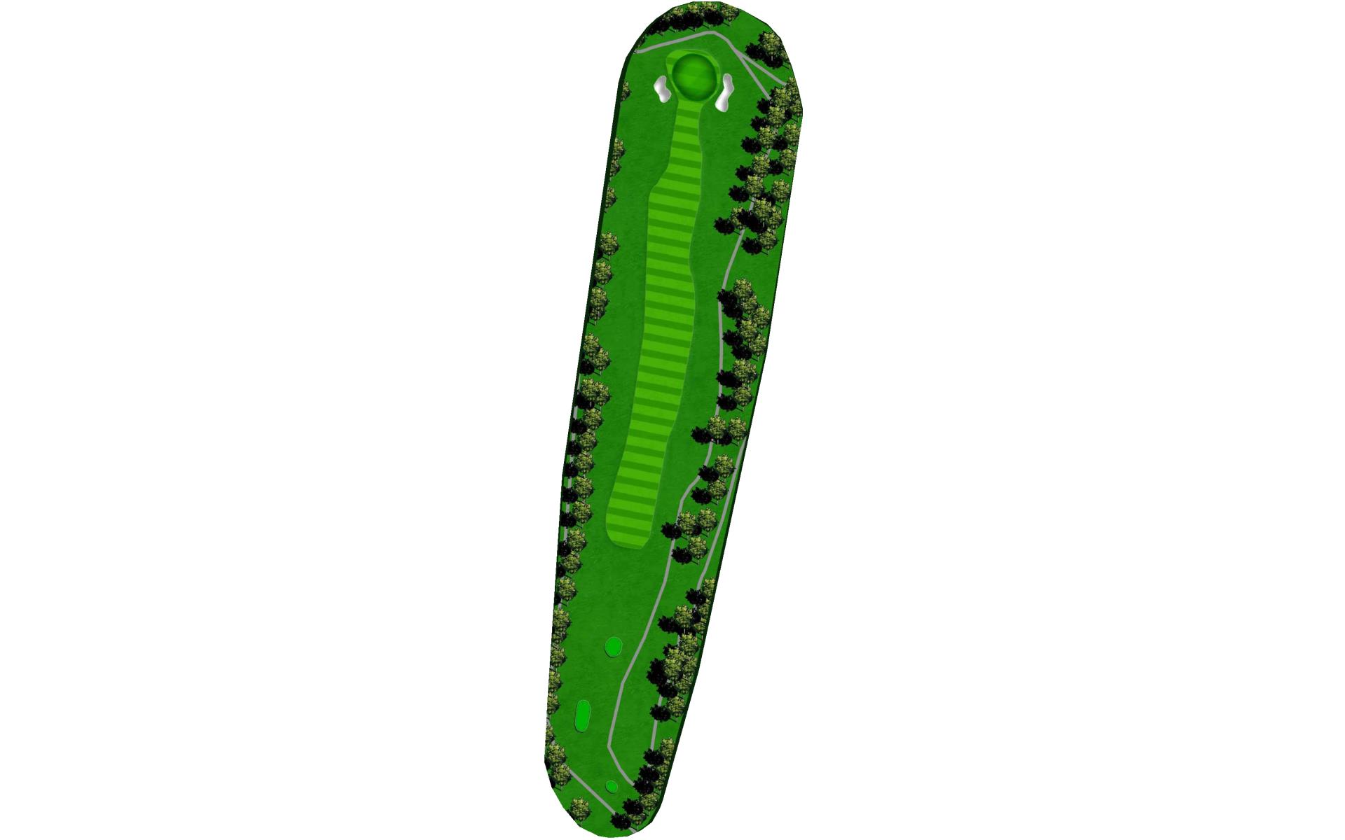 The final hole on the front nine is a straightaway par 4 with out-of-bounds down the left. A “speed slot,” which can dramatically shorten the hole, can be found by drives down the right side.