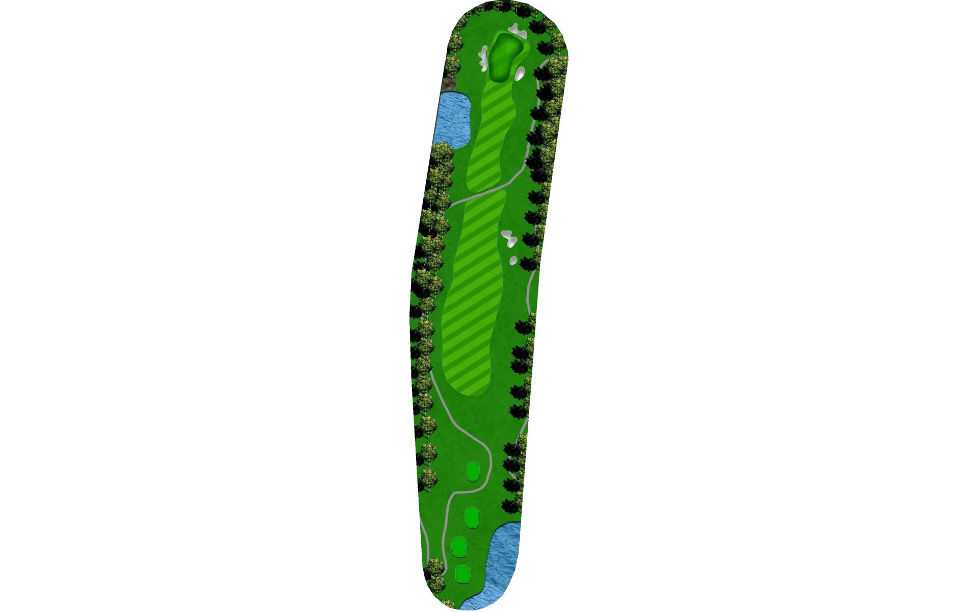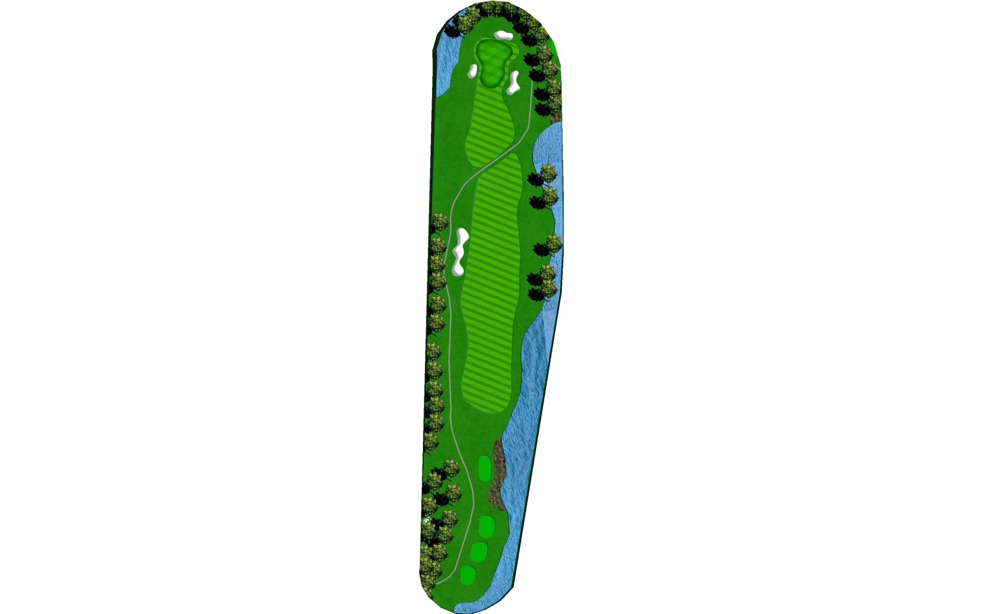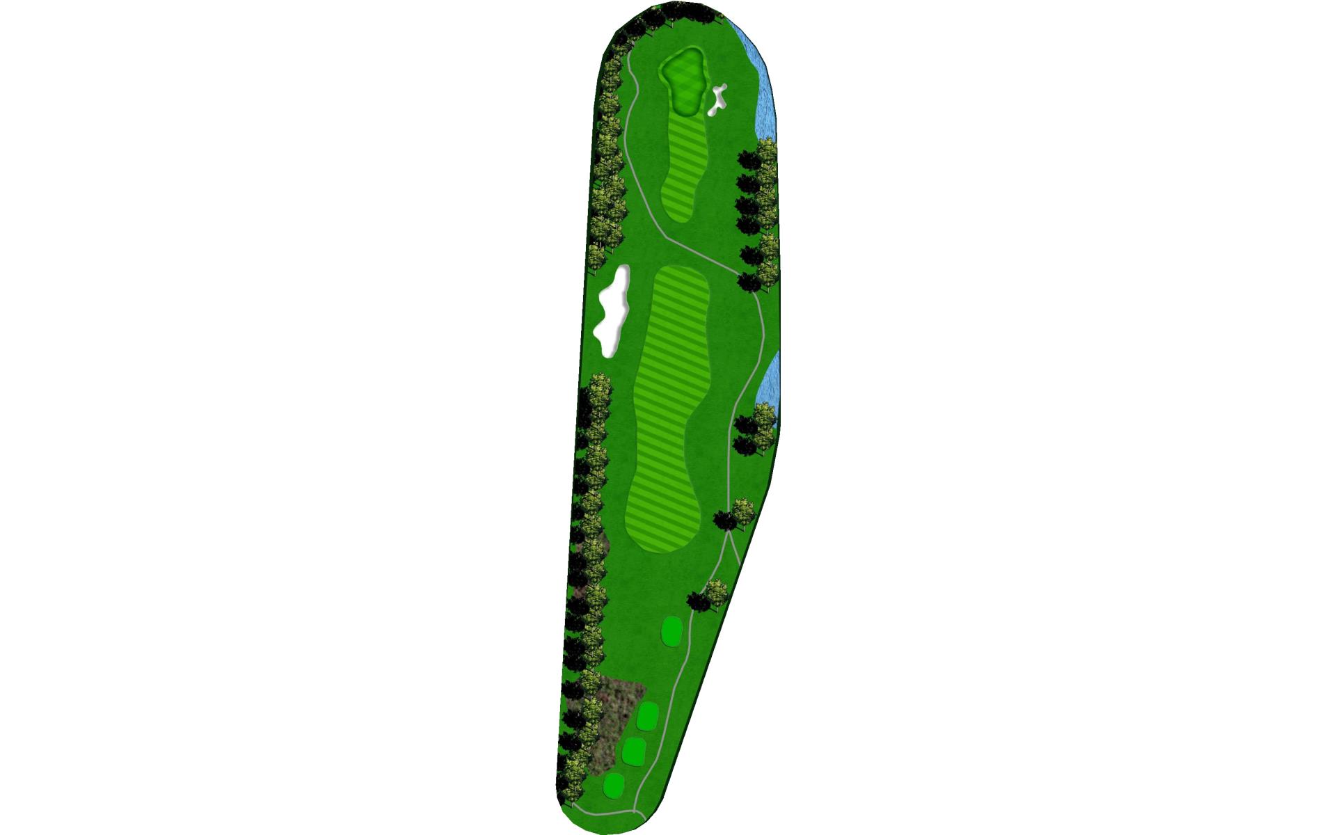 Long hitters can cut off part of the lake’s corner. Keep in mind the wind blows towards the water. Keep ball short of all pin positions.