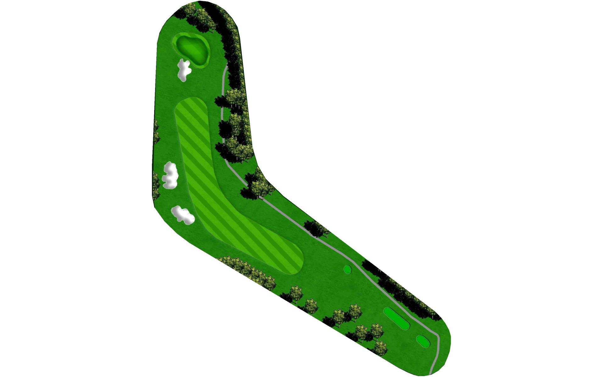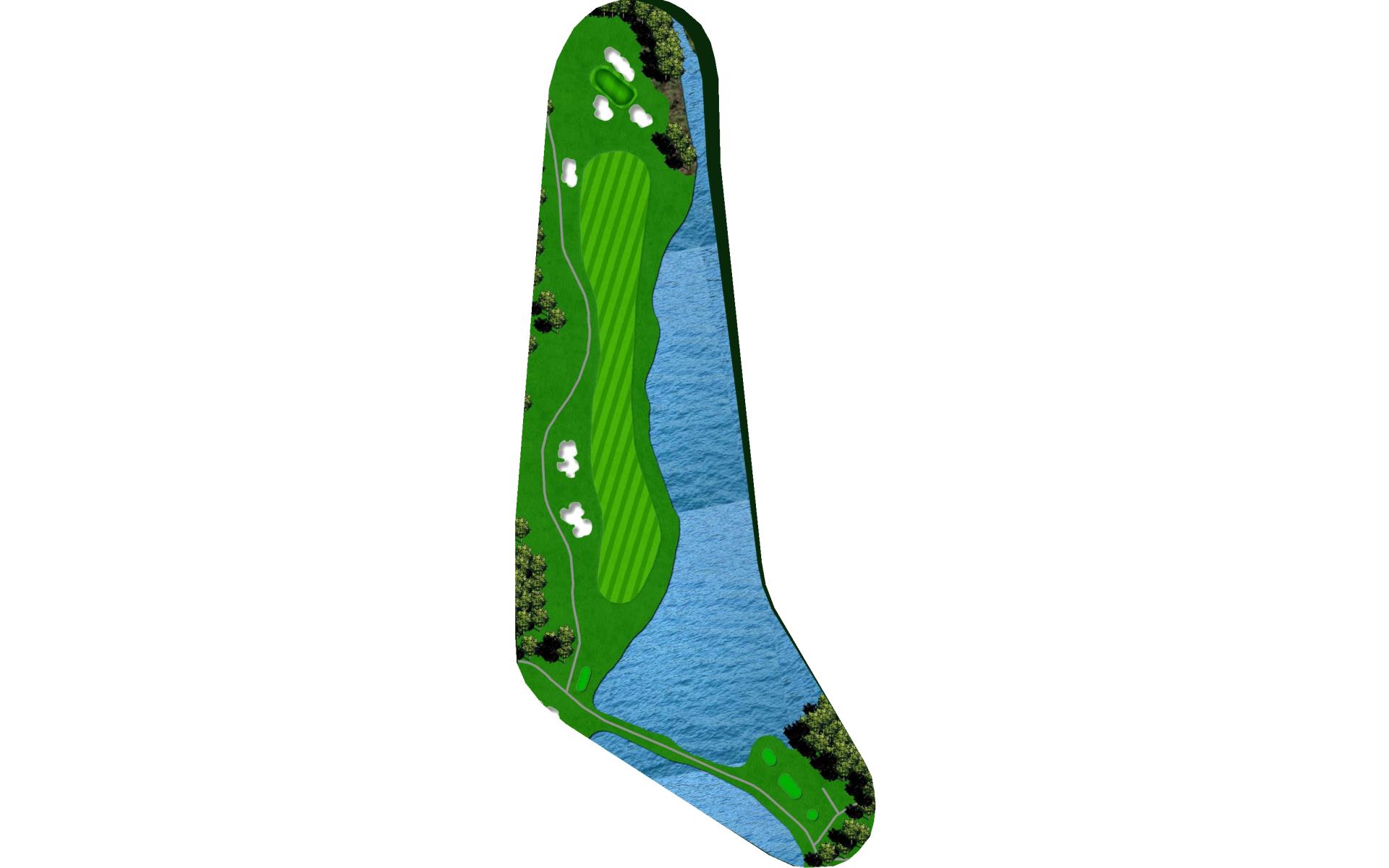 Dogleg left with a beautiful backdrop view of the lake. The left side slopes hard towards the fairway, while the right side is protected by …