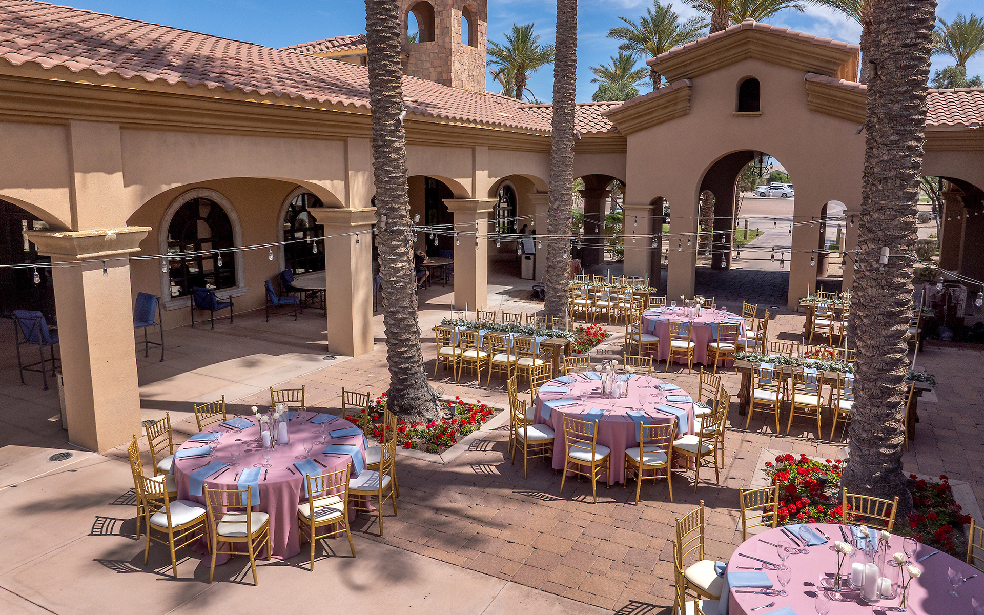 Host a fabulous event in our Gilbert event venues and enjoy the fruits of your labor along with your guests. Our private event directors help with everything from food to decorations to entertainment, and our staff makes sure your event is truly memorable. Our party venues in Gilbert AZ include a multitude of indoor spaces that accommodate up to 180 guests in a beautiful Tuscan-style clubhouse and outdoor event spaces for up to 100 guests, all with sweeping views of our pristine golf course, shimmering lake and lush orange groves. No matter the event, we'll create the appropriate mood in our Gilbert event space and take the stress out of hosting. (Don't worry, you still get all the credit.)