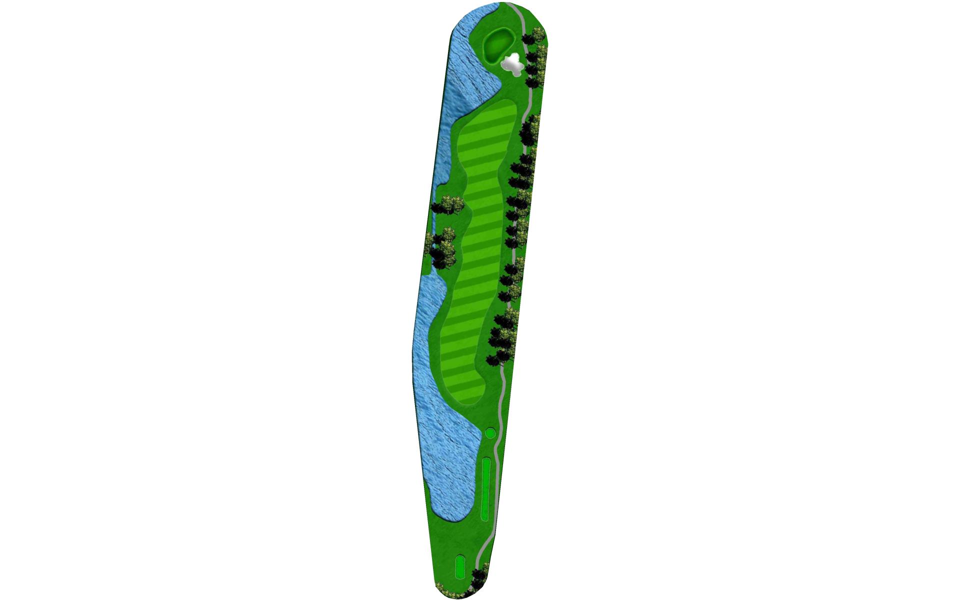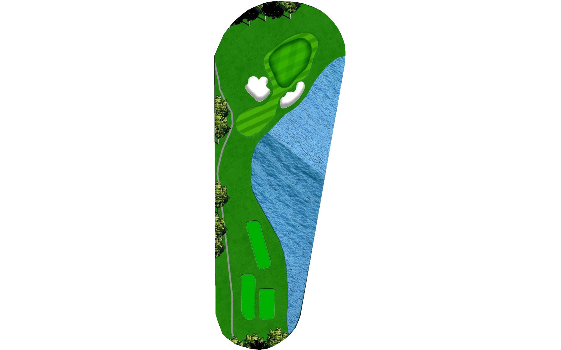 "Bagpipes" is a long par 4 that sets up for a challenging finish. A good drive leaves a long approach into yet another peninsula green. Extreme undulation in the middle parts of the green make placement on the second shot paramount to success with the putter.