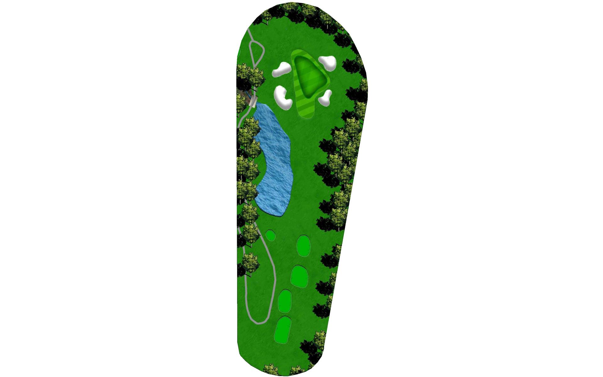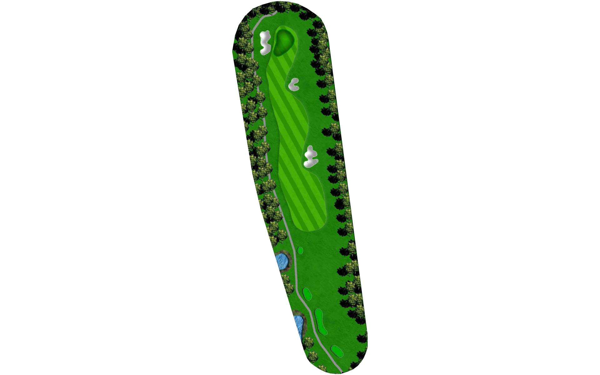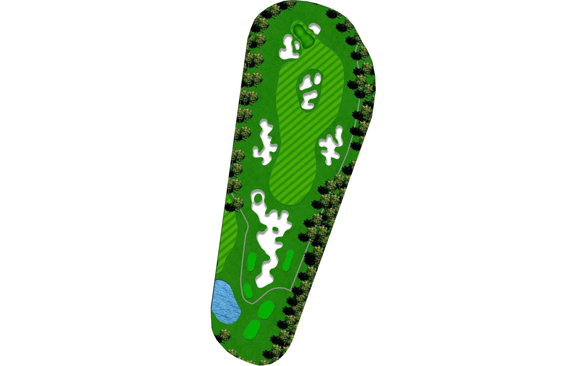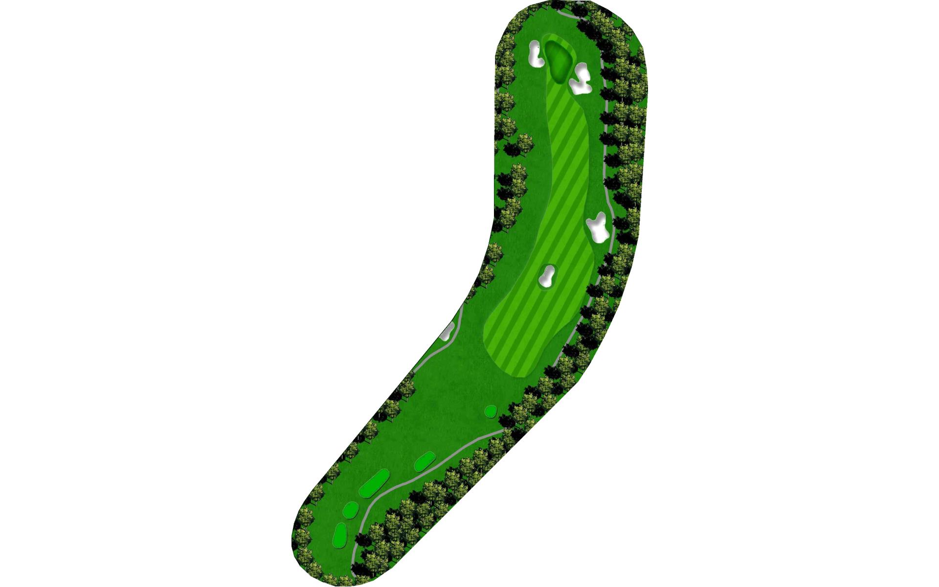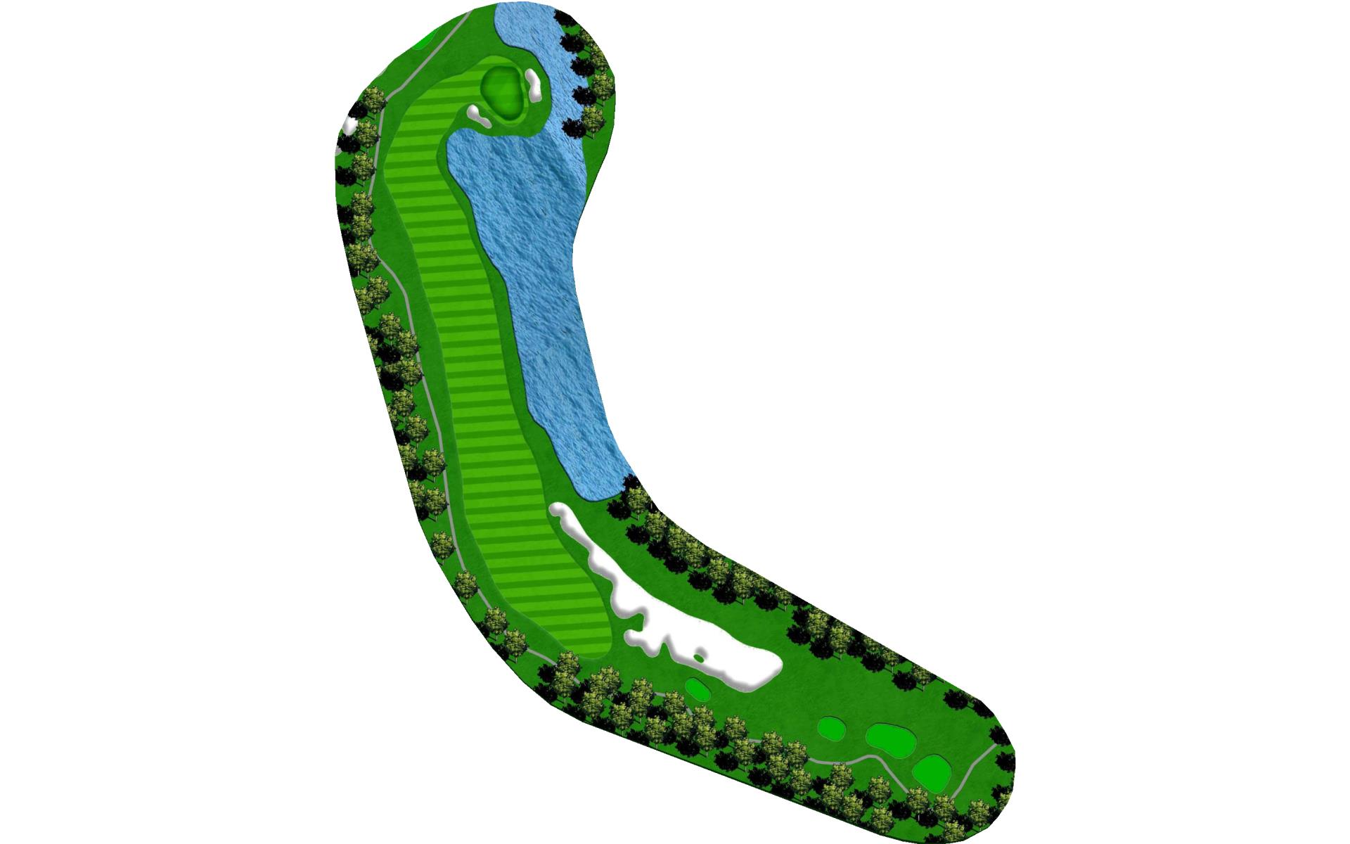A 432-yard par four, dogleg left invites the player to cut the corner and head for home. A strategically placed bunker in the landing area will make even the best players think twice. Upon reaching the green you will need a sound-putting stroke to get down in two.