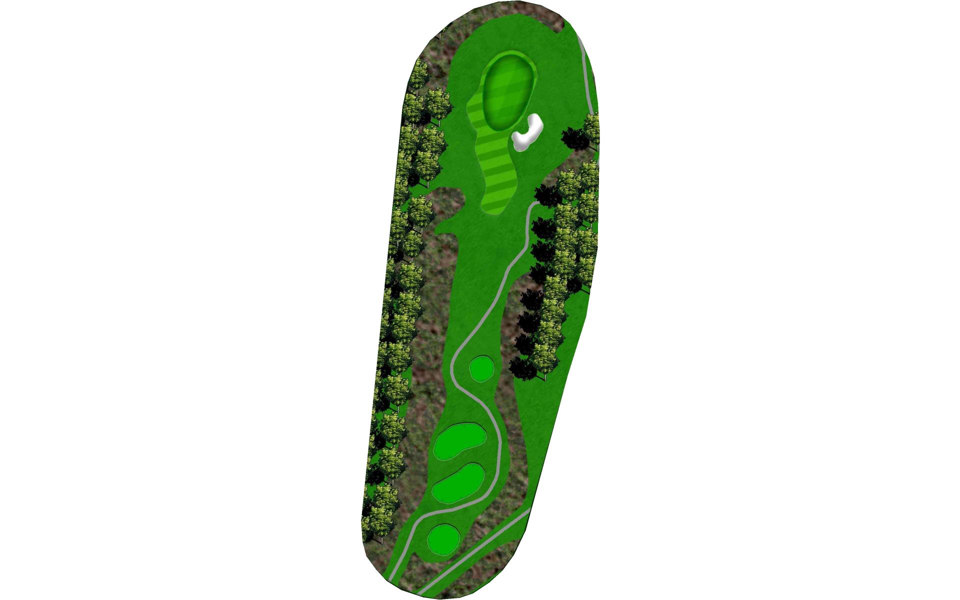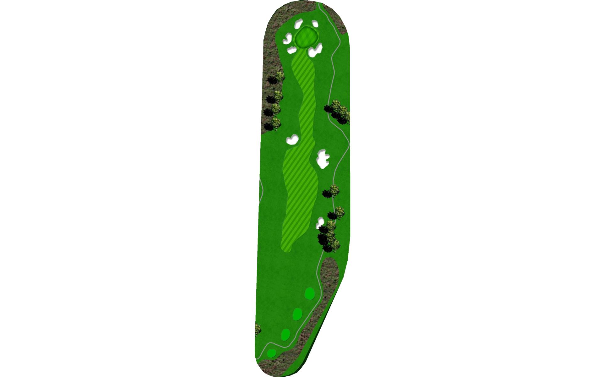 The green on this long, downhill par 3 is tucked into a hillside that slopes to the right. Trees shadow it’s left side. There is real trou…