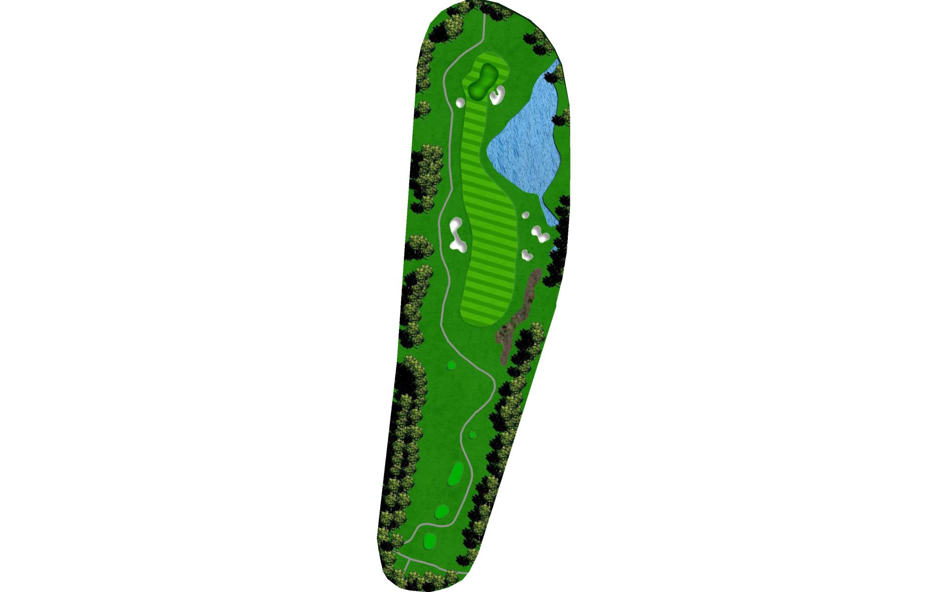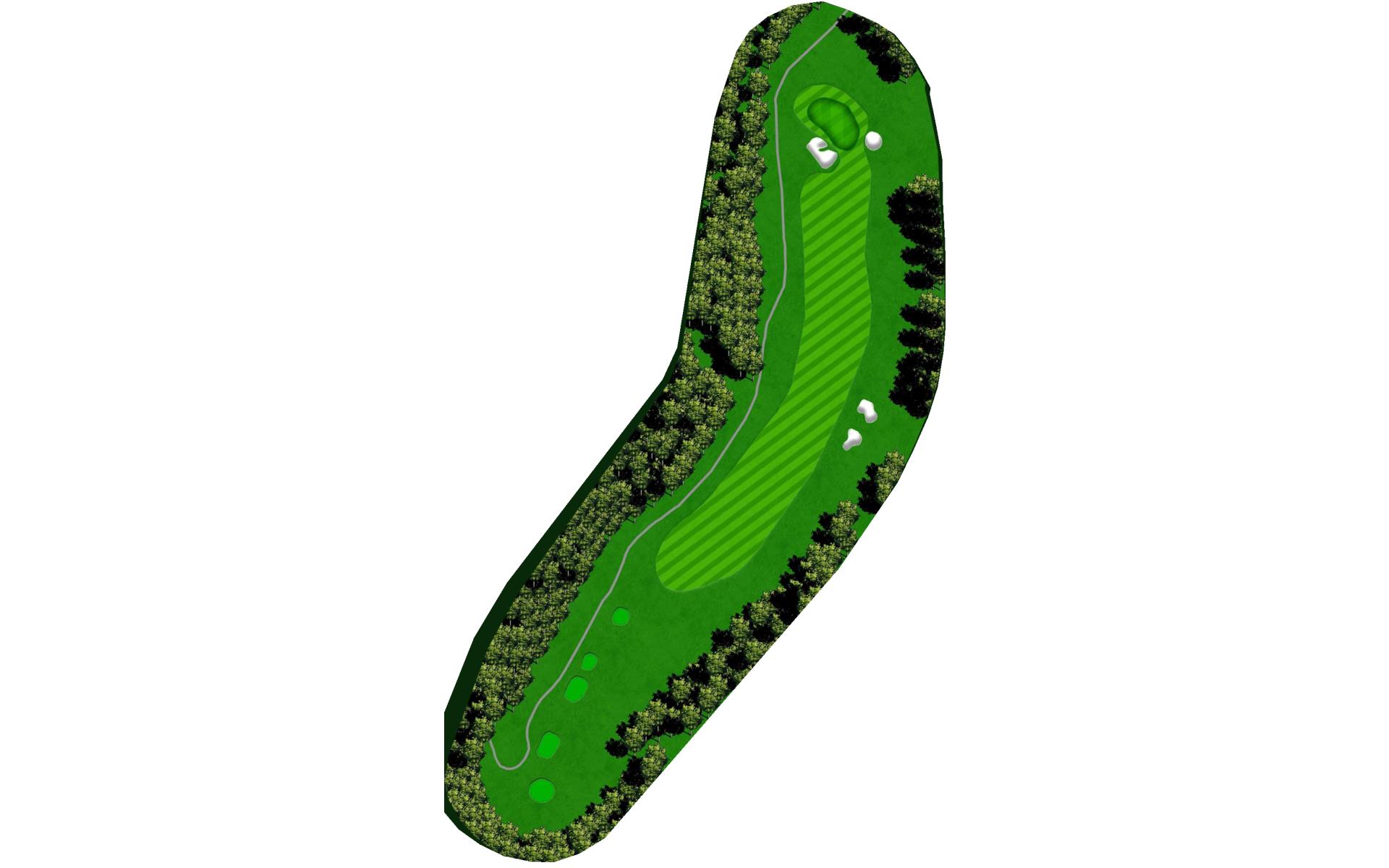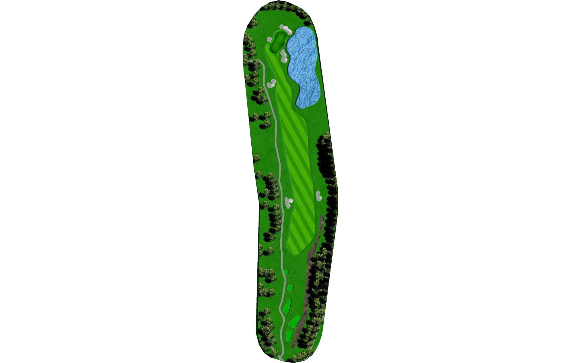 Tempting short Par 4 that is best played by laying up to 110 yards from tee in between the fairway bunkers. Green has a bowl on the right side that deflects in mishit balls to the right. Favor the left side of the green when pin is on the left