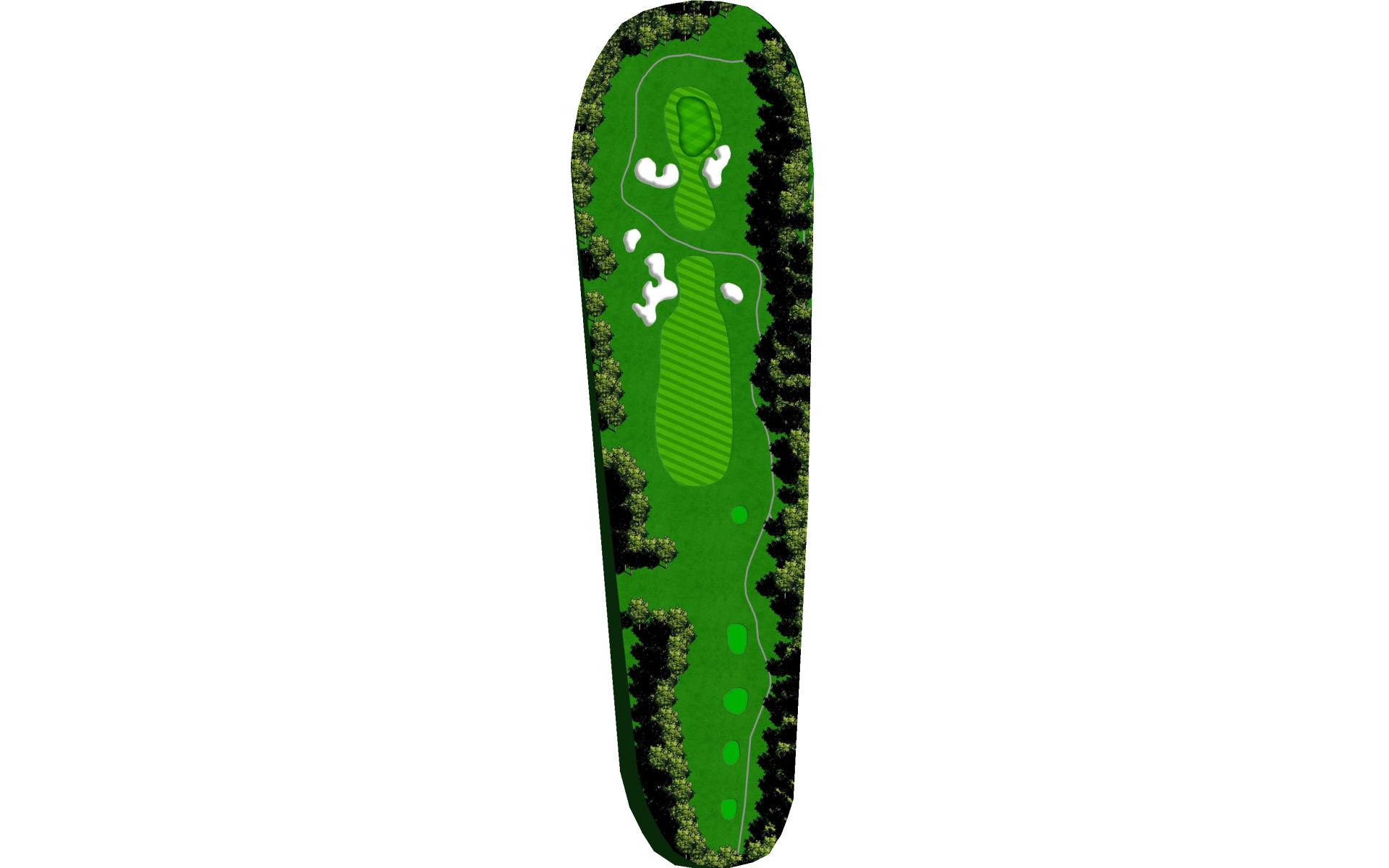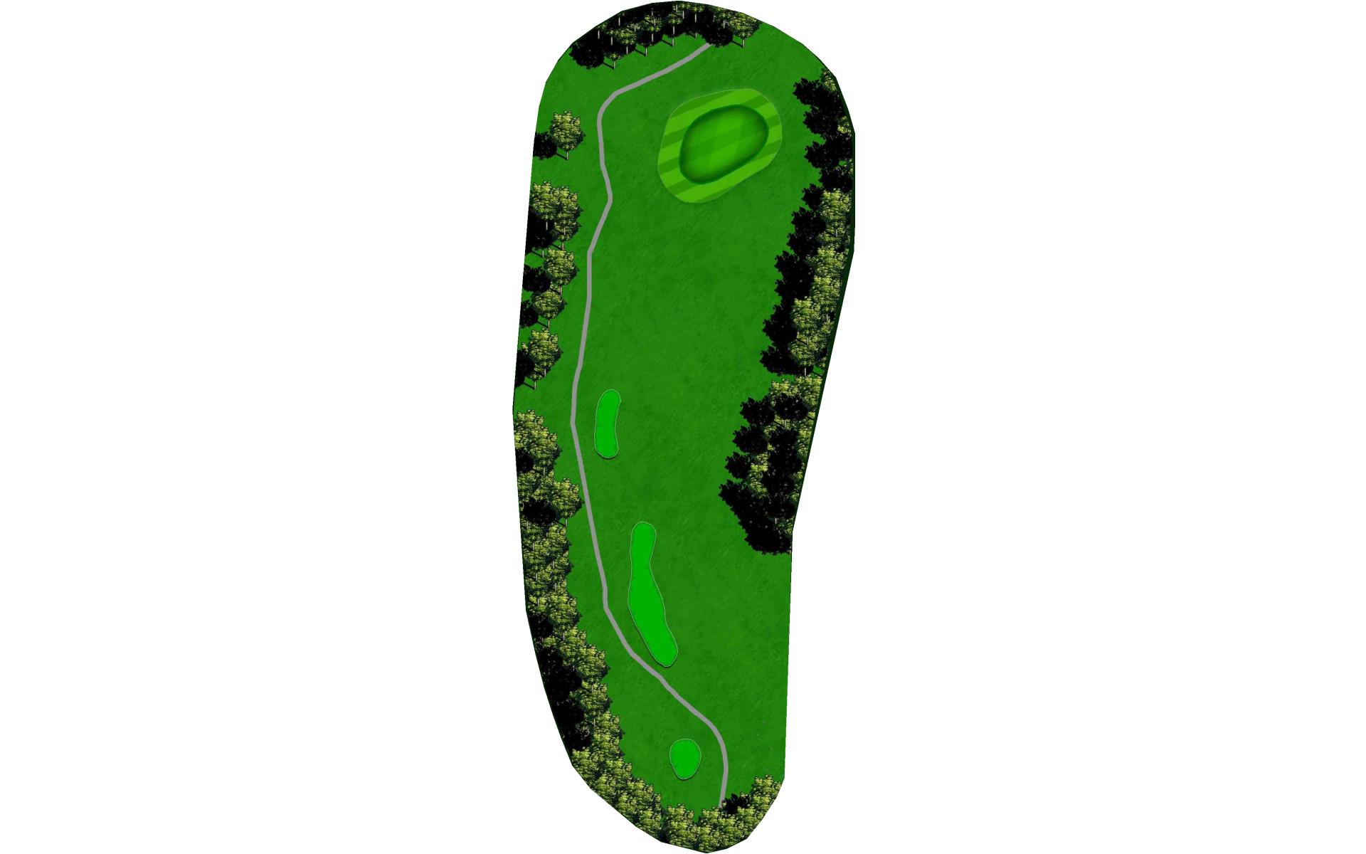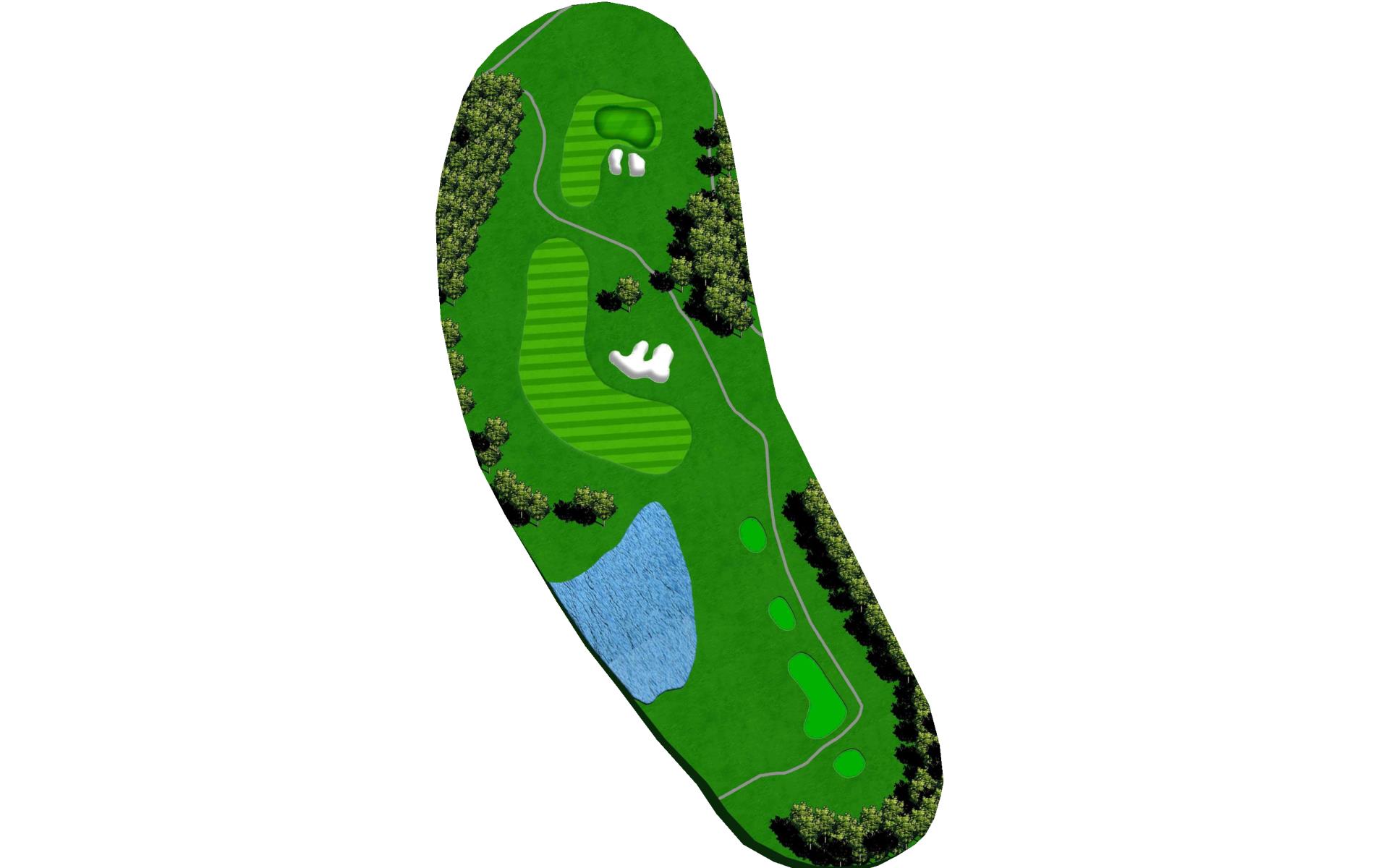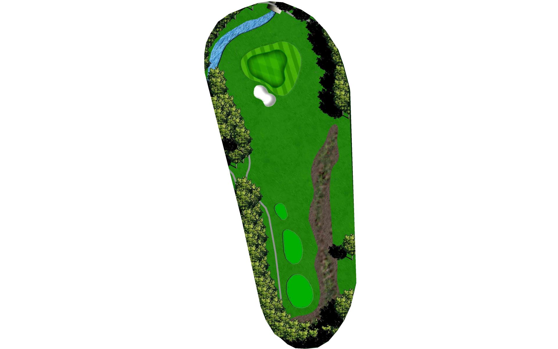Tempting short Par 4 that is best played by laying up to 110 yards from tee in between the fairway bunkers. Green has a bowl on the right side that deflects in mishit balls to the right. Favor the left side of the green when pin is on the left